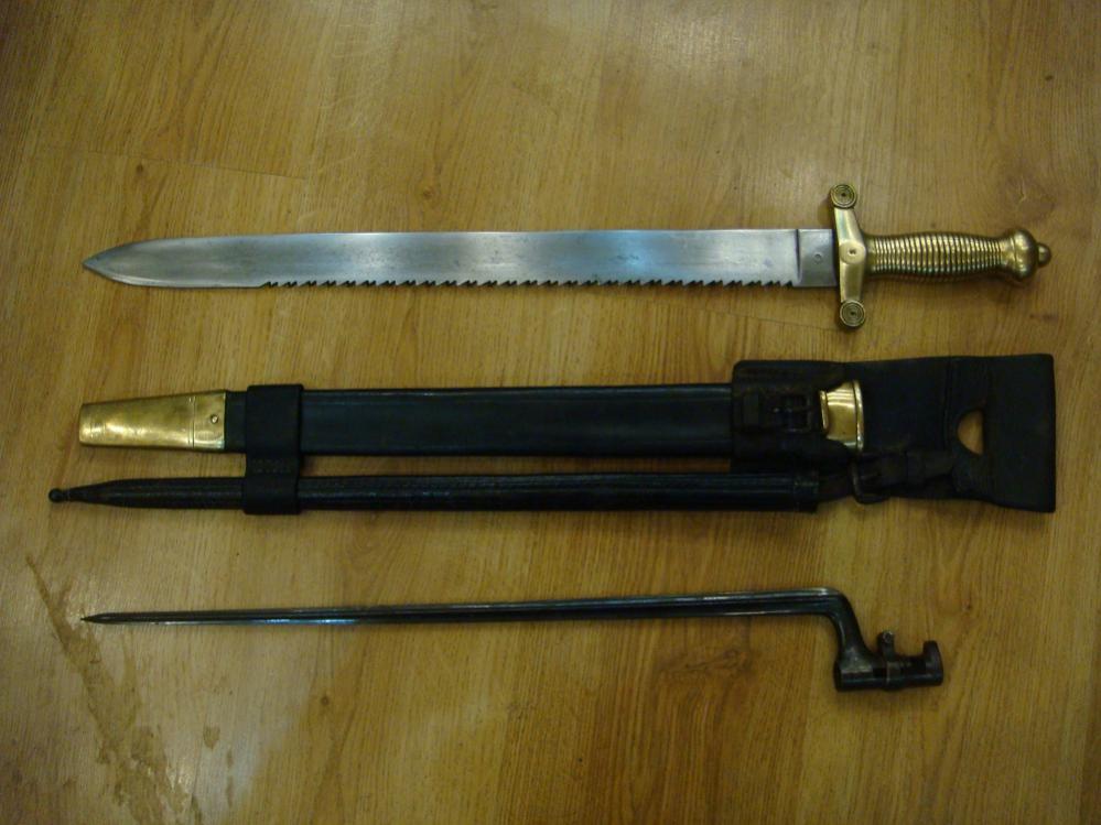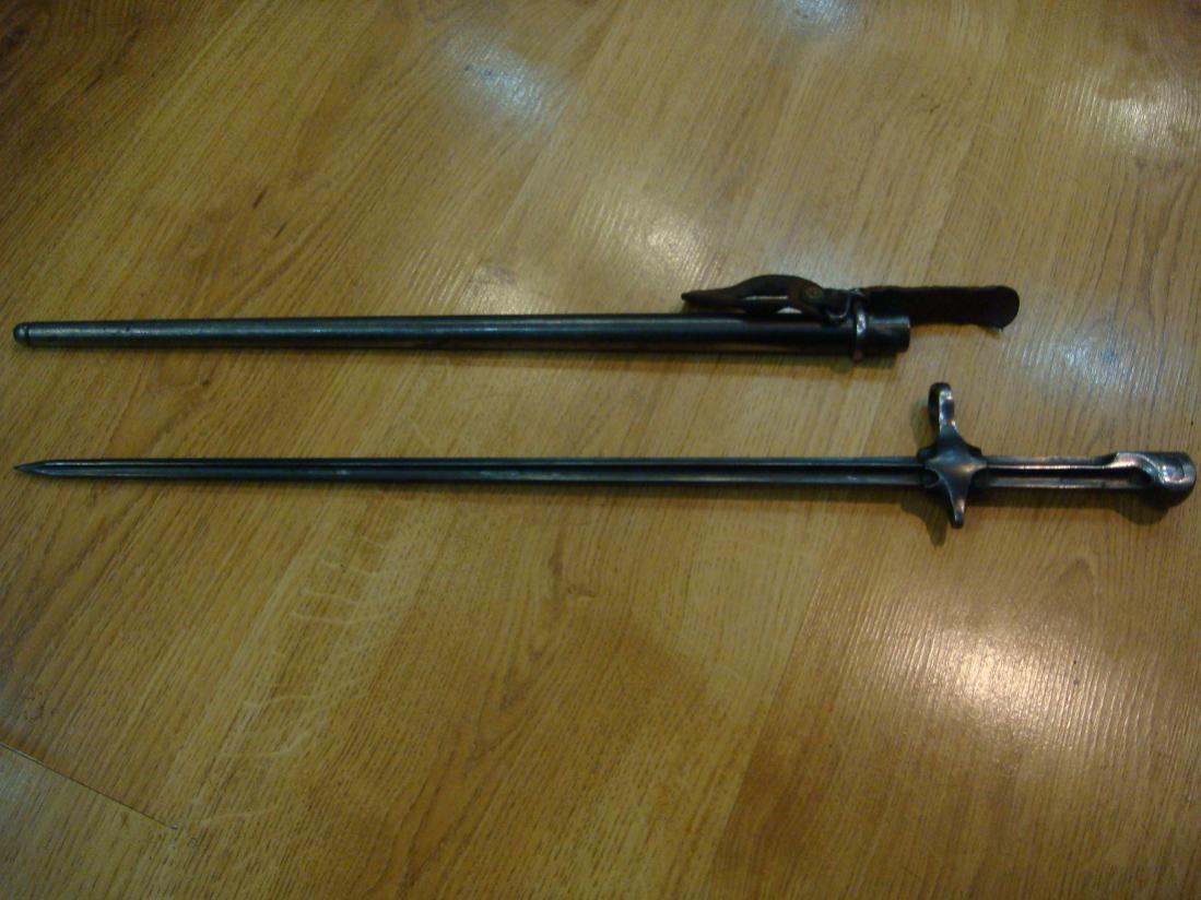 Где-то читал что такие иголки шли в наборе с тесаками. Пытался поставить вместо штыка к винтовке Веттерли образца 1863 года, но не становится ( маловат ), видно не от этого набора. Тогда получается что набор родной, а то были сомнения. Кстати, может у кого есть ссылки именно на мой набор.