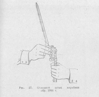 Ответ: Штык ...на винтовке в походном положении штык примыкался к стволу наоборот, а на карабине обр. 44 г. он не сьемный, и поэтому складывался ...Ваш штык от винтовки.