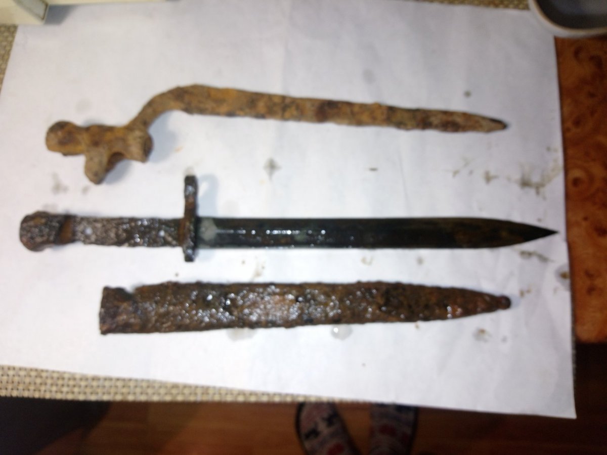Сделайте нормальные не "мытые" фото (вообще ставить такие фото везде считается неуважением к форумчанам). По верхнему штыку - нужны размеры: длина всего штыка, длина и диаметр трубки, расстояние от трубки до клинка, ширина клинка в самой широкой части