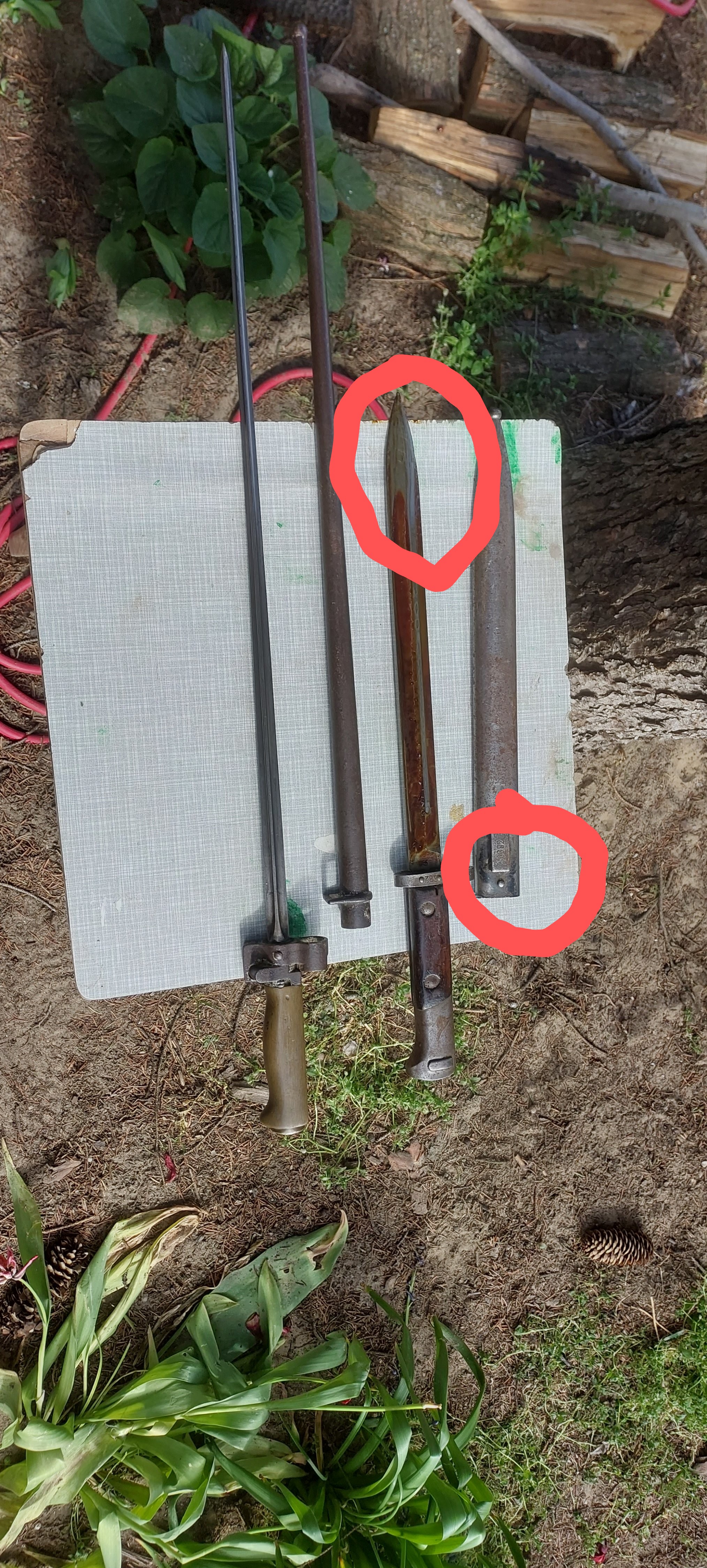 Чем же он сомнительный? Нож, склад. Смазка загустевшая от старости. То что, воронение слезло, такое бывает.