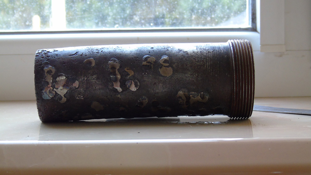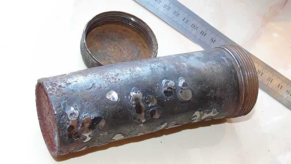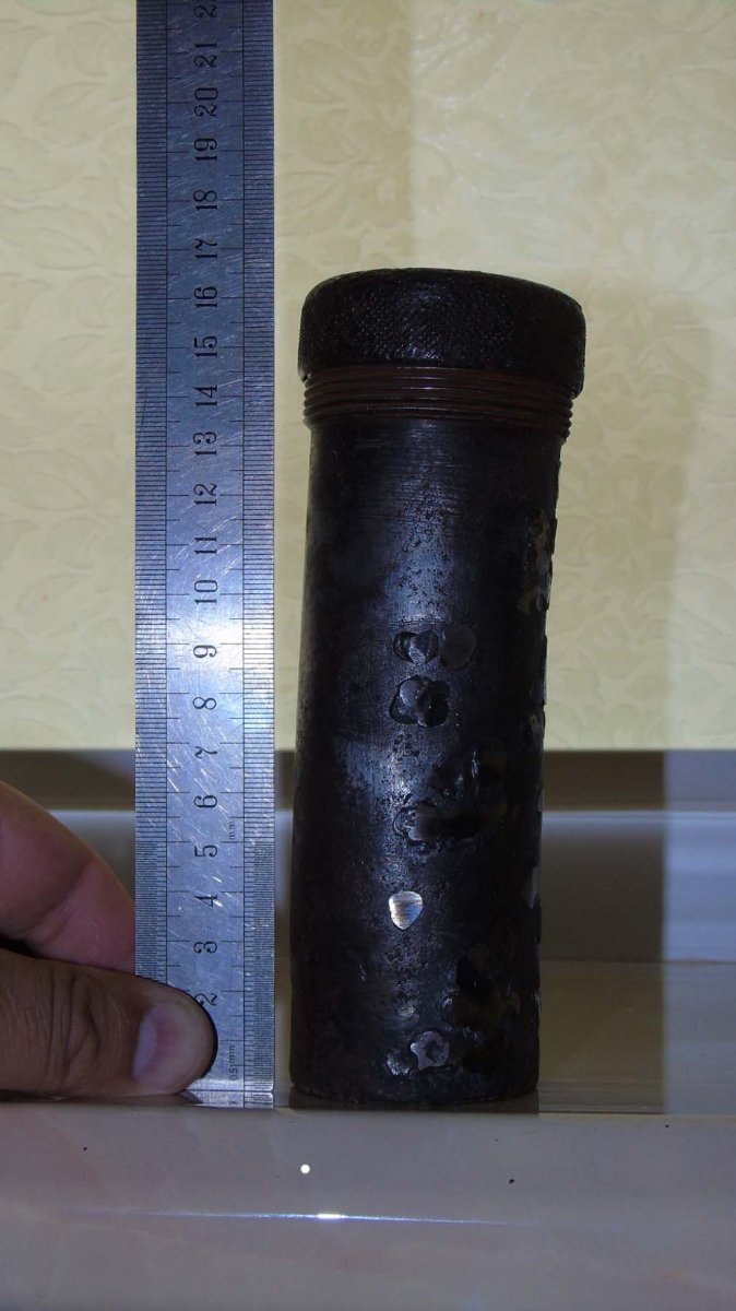 Человек банально испортил предмет. В процессе наплавки раковин, предмет видимо перегрелся и его выгнуло дугой. И это не смотря на то, что предмет не уставший, метал достаточно крепкий.