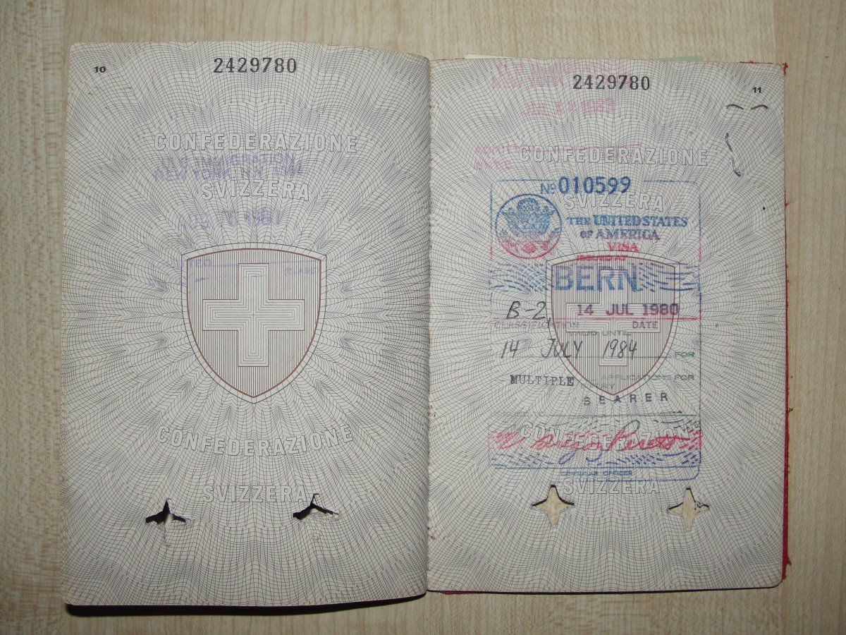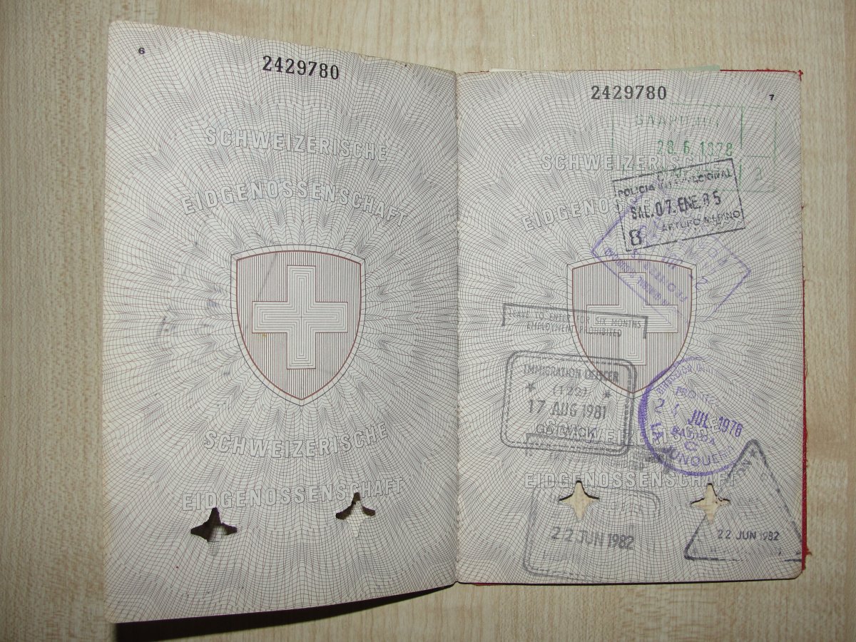 Здравствуйте. Выставлял эту тему в разделе "сколько стоит"-удалили,решил попытать счастье здесь! Попался старый швейцарский паспорт,такие паспорта были в обиходе с 1959 до 1985 года.И еще на корешке авиабилета письмо,вроде от девушки,адресовано владельцу паспорта.Может кто-то переведет? Меня немного удивило количество "вояжей" молодого швейцарца, и это в загнивающем капиталистическом западе)))! Может ли такой документ быть предметом коллекционирования? Сделал фото всех страниц,на которых есть отметки. P.S. такое впечатление,что держишь в руках кусочек жизни другого человека! Спасибо. С уважением.