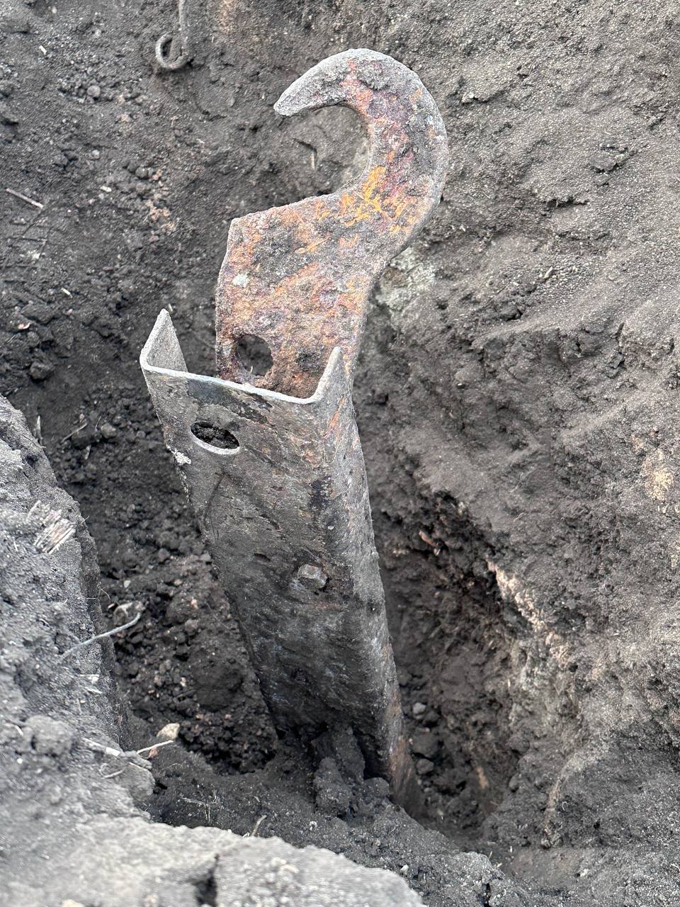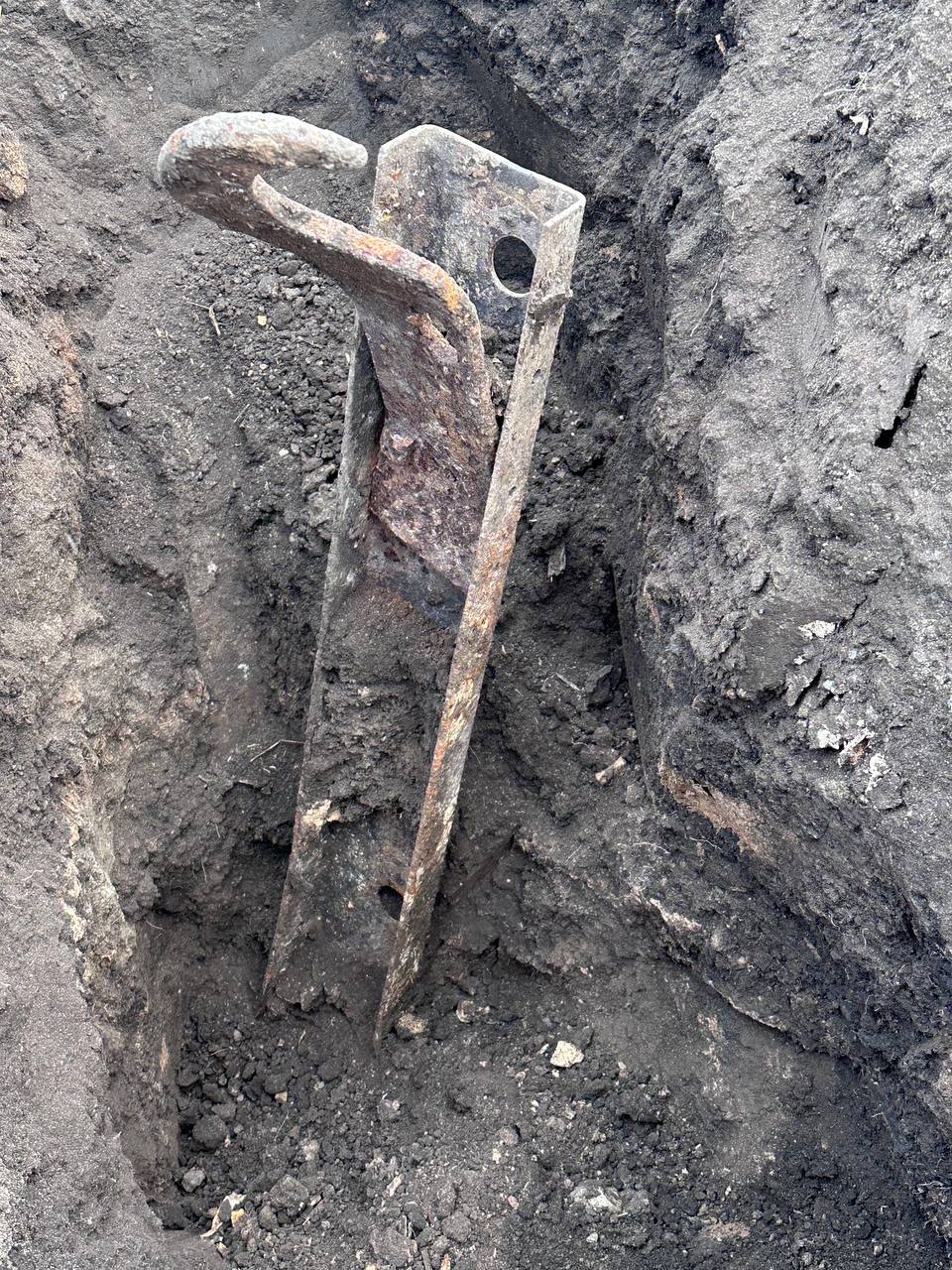 Добрий день Допоможіть будь ласка оприділити, що за деталь і від чого Деталь здорова і важка, ще приблизно на метр уходить в землю але її там щось тримає. Можливо щось від техніки другої світової. Просто хочеться зрозуміти, чи є сенс їхати да розкопувати повністю Дякую