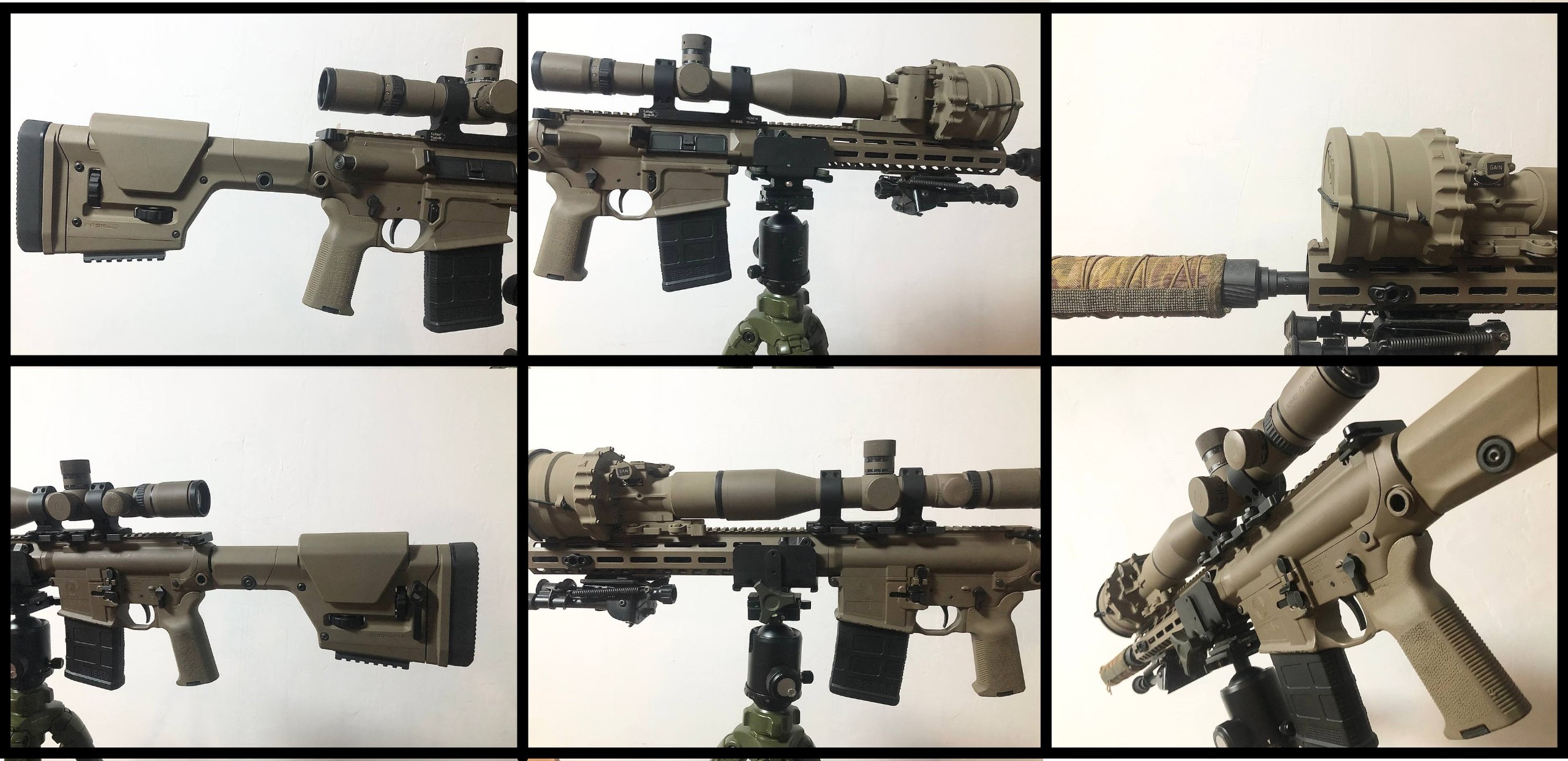 Рукоятка Магпул і покраска церакотом . Пікатіні на прикладі під третю ногу. Зброя на бойових не була. Є чохол для глушника.