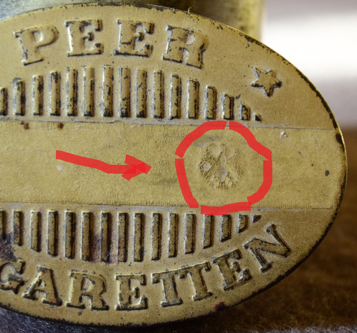 Такой орёл мог стоять 1919-1935 и ФРГ - с 1952 года. На фото,что скинул - коробки, как одна из темы..Описывают как на 1950-е года. https://www.kleinanzeigen.de/Original-PEER-Cigaretten-Dose-ca.1950-Alte-B-33185058-bilder.html?sel=3