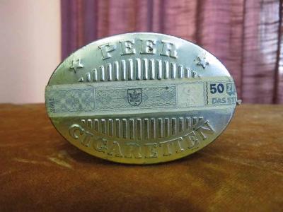 Подобную цилиндрическую коробку (PEER Cigaretten) встречал в экспозиции винницкого "копательского" музея, где она атрибутирована как ВМВ.