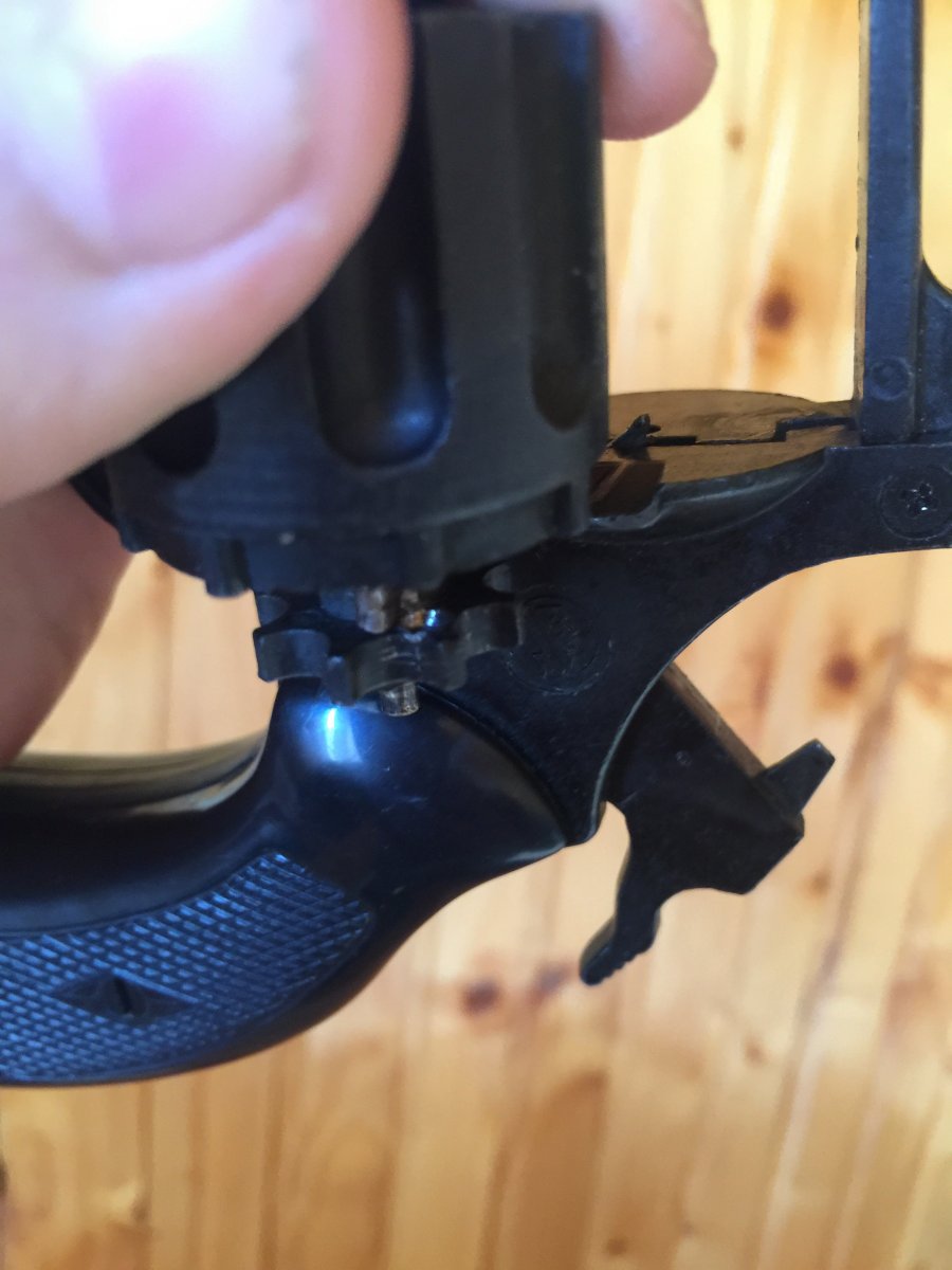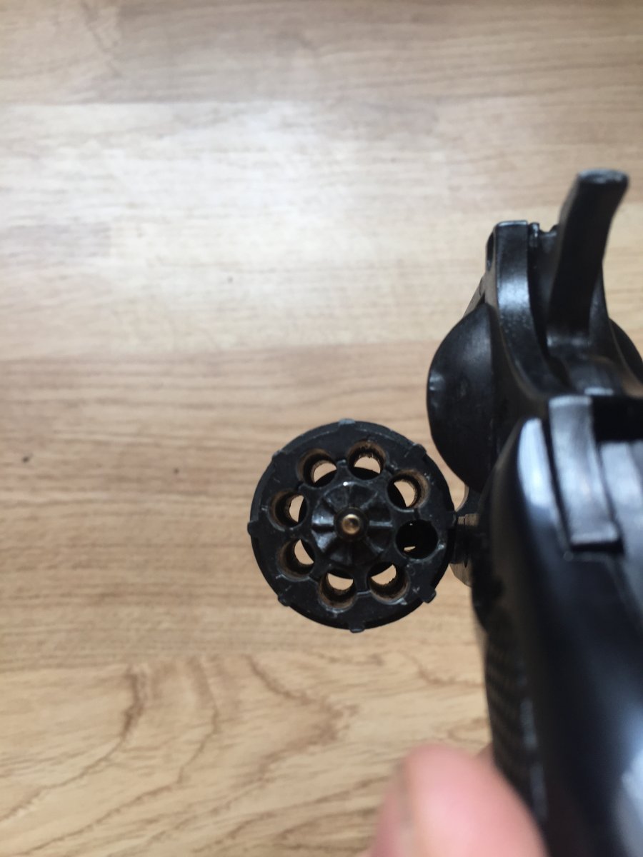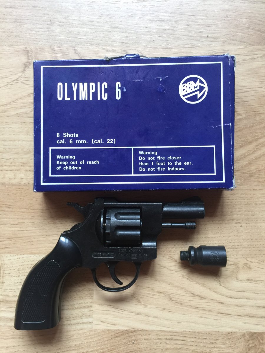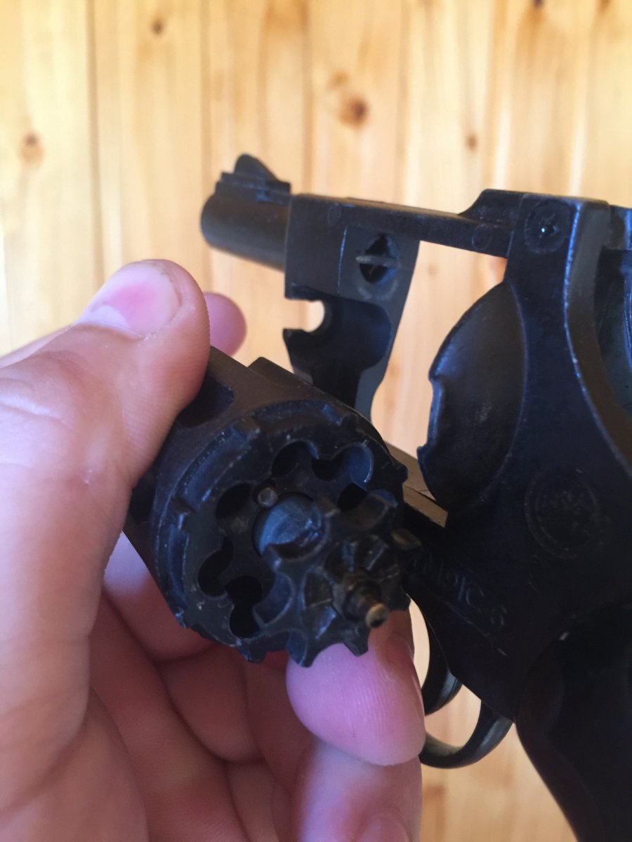 Доброго дня, продам сигнальний револьвер Olympic 6, під холостий патрон 6 мм. Присутні потертості, в барабані присутні обмежувачі, в стволі стоїть розсікатель. Присутній дефект як зламана направляюча екстрактора гільз, вставлений кусочок цвяшка і пророблена канавка( при бажані можна прихопити холодною зваркою) на роботоспосібність не впливає. Ціна 800 грн.