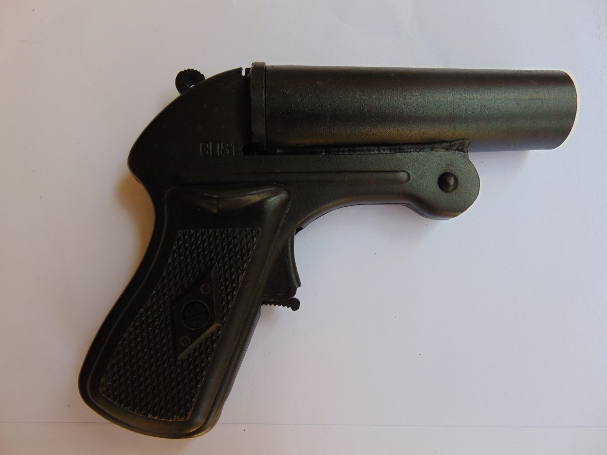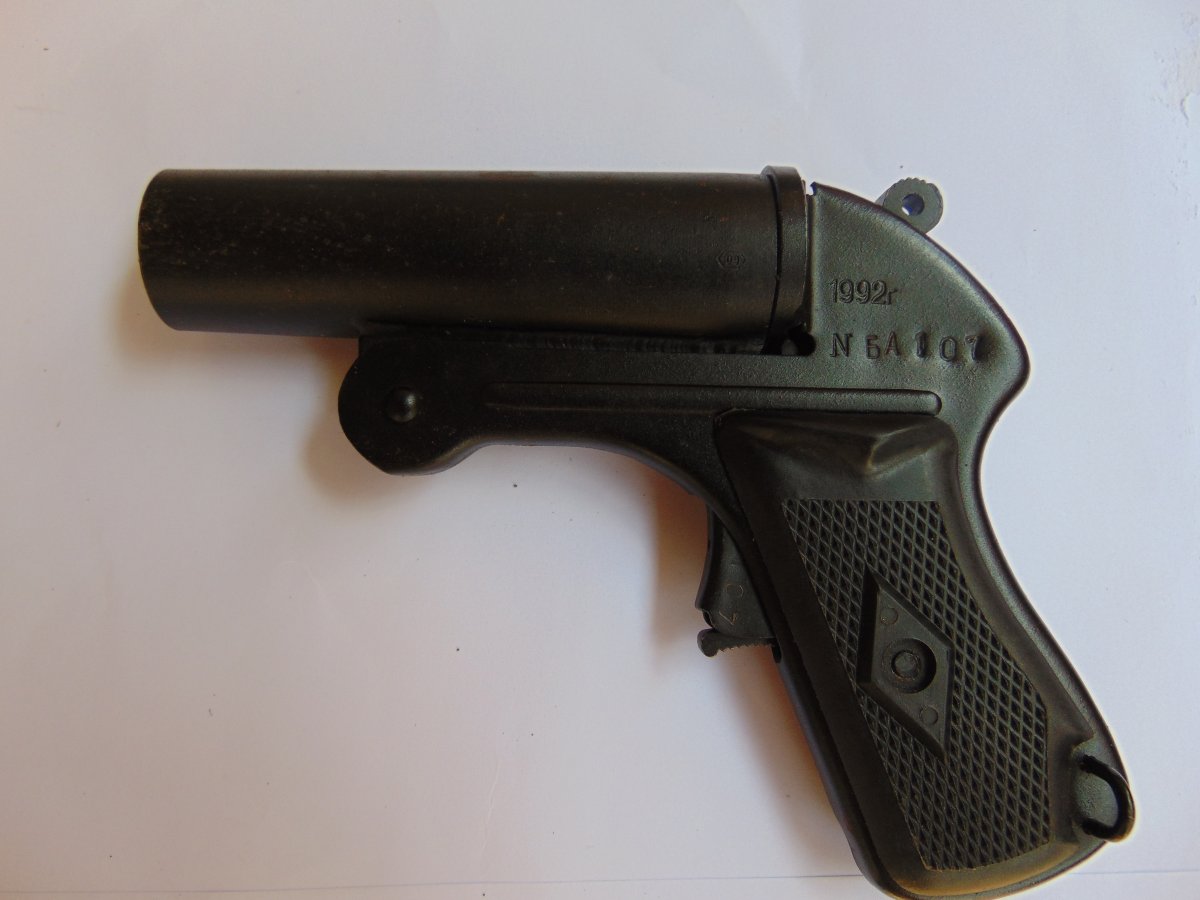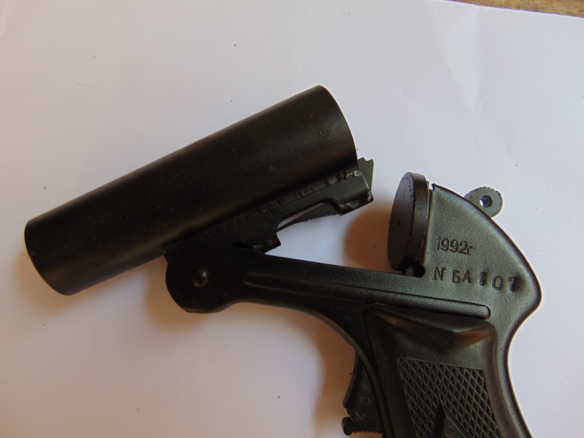 Приветствую форумчан прошу помощи в оценке сигнального пистолета сп-81. Состояние на фото. 26-мм сигнальный пистолет представляет собой гладкоствольное ручное приспособление предназначенное для стрельбы сигнальными и осветительными патронами различного цвета горения. И является наиболее современным образцом сигнального оружия. Выпускается в России Ковровским механическим заводом. Пистолет имеет очень небольшую массу — 600 г. На пистолете имеются клейма з одной стороны клеймо сп 81 с другой 1992г и номер 5А 107