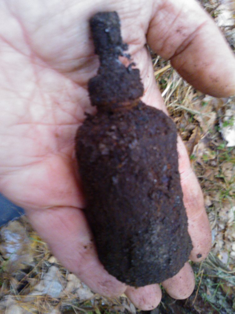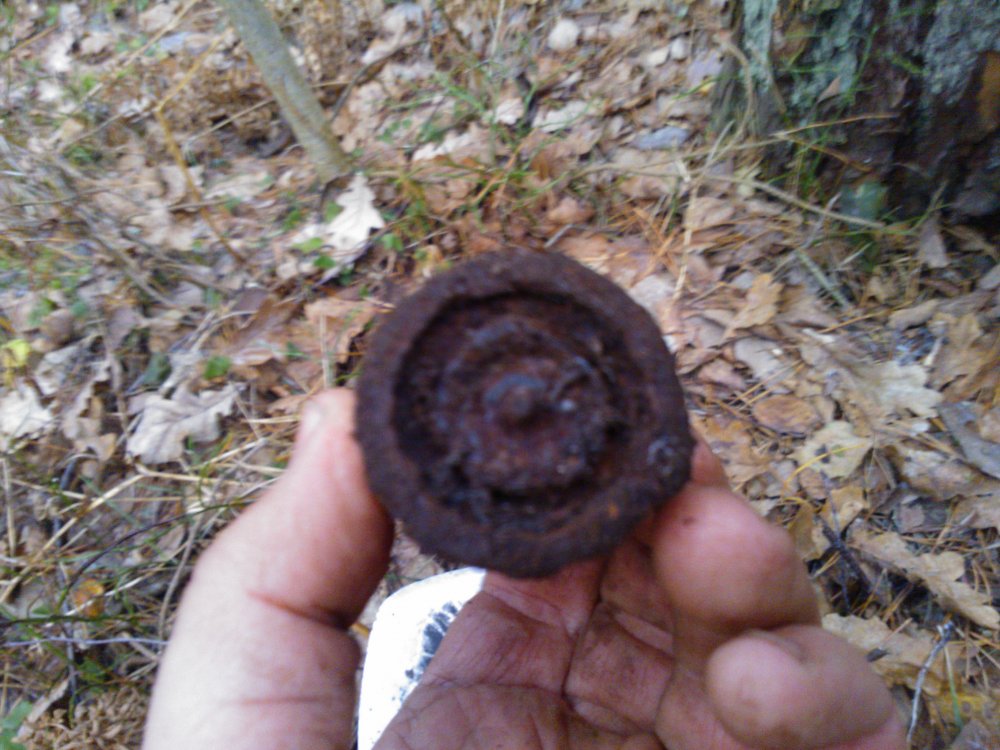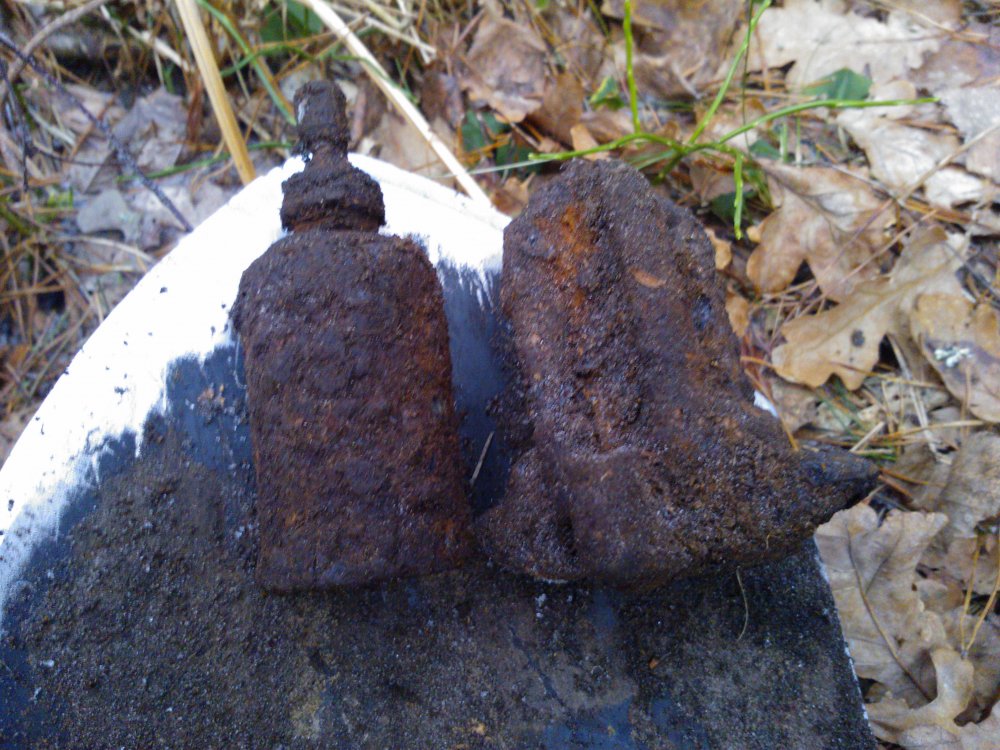 Оставил в лесу две такие железки. Одна на масленку похожа, внутри, похоже пустая, вторая сплошное железо. Только на телефон их снял. Правда плохо вышли, темно в лесу зимой без снега. Что же это такое было?