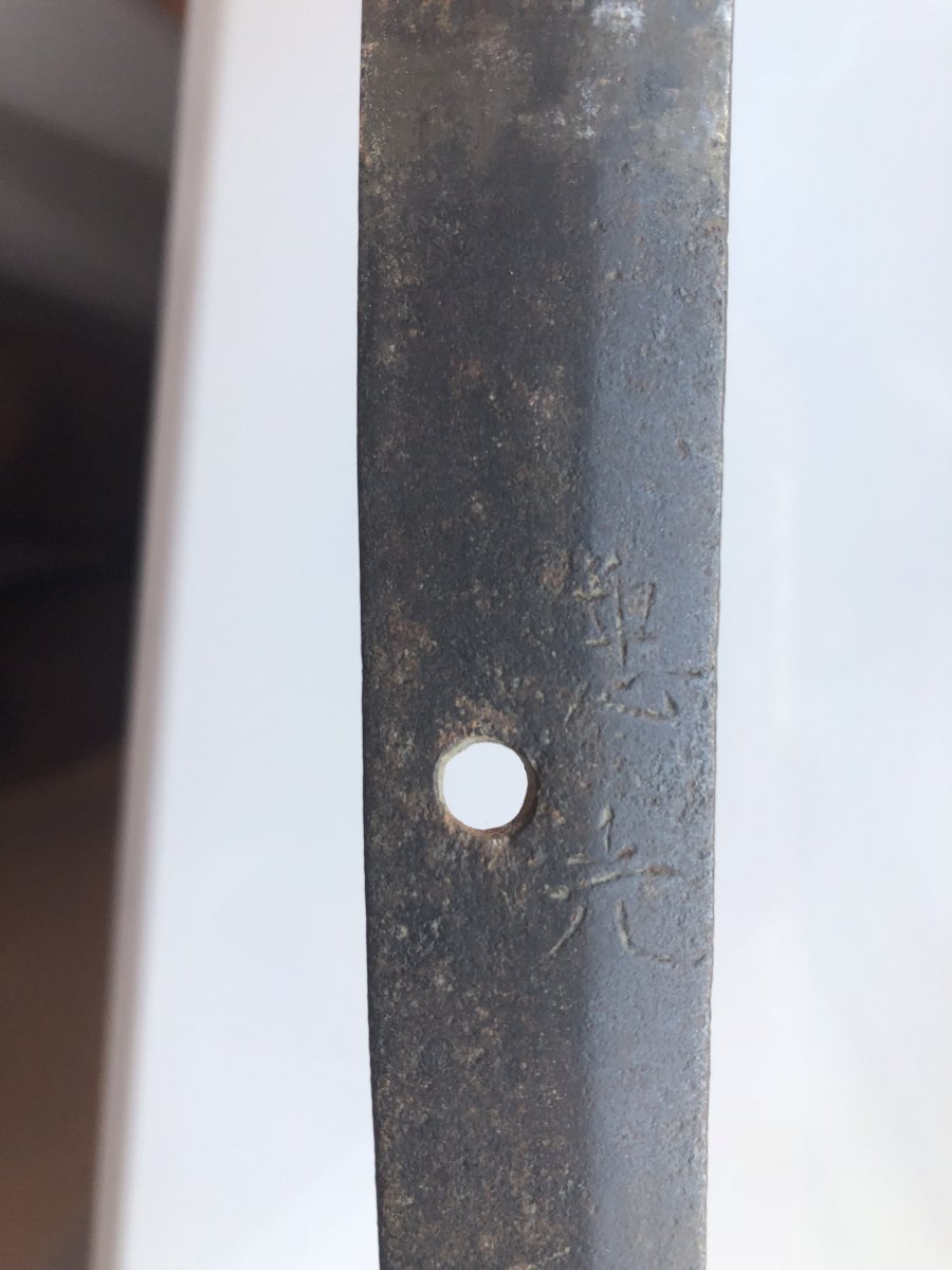Подписан, как Садамицу, но возможно это "гимей". Произведен в период Showa. Жаль, что глубокие забоины на нем уже не удасться вывести полировкой...