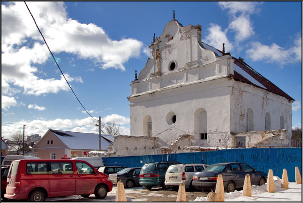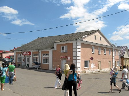 частина віддана під склади і магазин будматеріалів. інша частина,яка ще донедавна була діючою синагогою,відомим місцевим жидом перероблена під кабак і готель. звісно для гешефту )) ще й турфірма