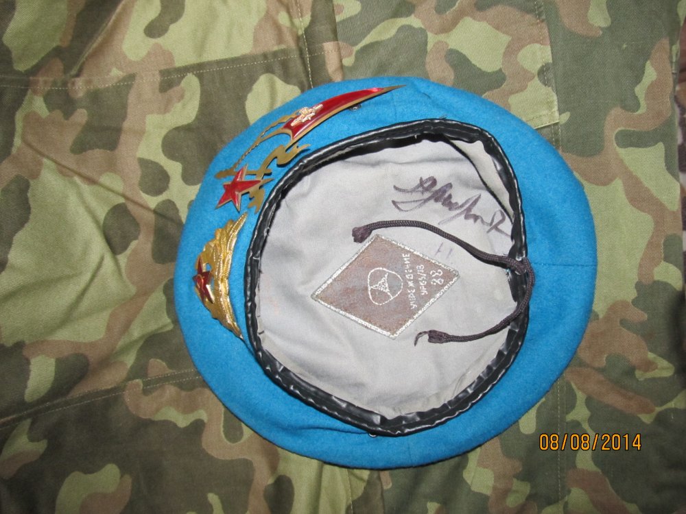 Берет ВДВ СССР 88 года . Берет в хорошем состоянии . Размер на штампе 58 , но был немного ушит на 54-56 . Внутри берета имеется личная роспись Александра Васильевича МАРГЕЛОВА . ЧЕЛОВЕК который 5 января 1973 года впервые в мировой практике произвел десантирование на парашютно - платформенном средстве в комплексе " КЕНТАВР " с АН -12 в БМД-1 . В подтверждение подлиности росписи есть мое личное фото с Александром Васильевичем . Причина продажи -у меня их два ,что подтверждаю фото на котором два берета . Цена -1500 гривен .