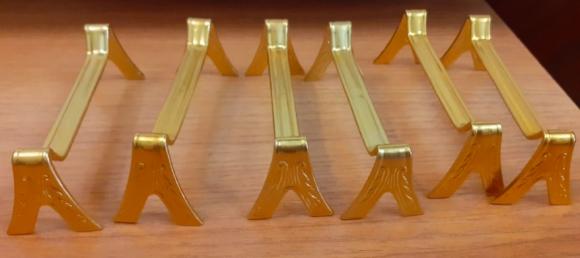 Вітаю! Щодо розмірів та стандартів нічого сказати не можу, але... Є логотип заводу металевих столових приладів, м.Ленінград . Товари: столові прилади, підставки, терки. Час використання цього логотипу : з 1956 по 1963 рік, коли цей завод увійшов до складу Ковальсько-механічного заводу.