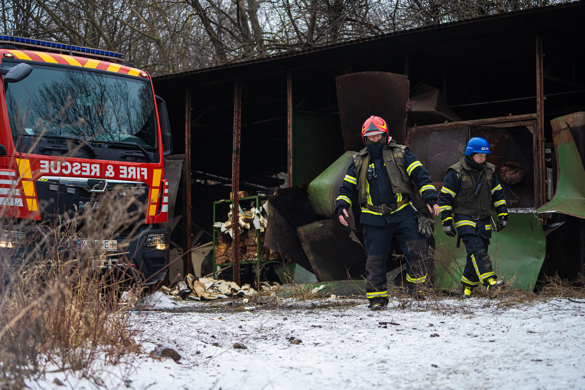 ДСНС України Рятувальники ліквідували наслідки ранкової атаки на столицю. 14 січня ворог здійснив чергову атаку на Київ. Зафіксовані влучання за кількома адресами у Голосіївському та Дніпровському районах, де були задіяні рятувальники. Так, у Голосіївському районі за однією адресою, внаслідок падіння уламку ракети на територію одного із підприємств, виникла пожежа в складській металевій будівлі на площі 20 кв. м та пошкоджено віконні блоки в поруч розташованому 2-поверховому корпусі. До ліквідації наслідків залучалося 15 чоловік особового складу та 4 одиниці техніки. У Дніпровському районі внаслідок падіння уламку ракети на відкритій території біля будівлі одного із підприємств району, пошкоджено стіну на площі орієнтовній 25 кв. м, вибито вікна та пошкоджені комунікації. Пожежі на місці не було, залучалося 9 чоловік особового складу та 2 одиниці техніки. Інформації щодо жертв та постраждалих внаслідок даних подій немає.