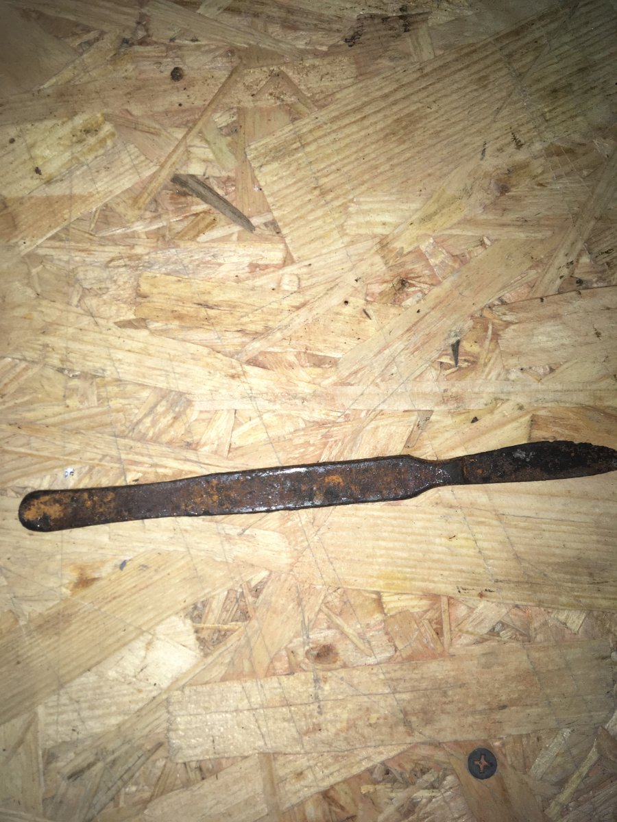 Найден был в лесу , (по слухам этот лес по сей день называется «Немецкий лес «. Был выкопан с глубины примерно 35 см )