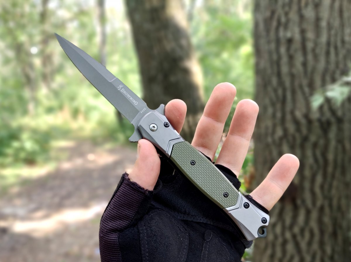 СКЛАДНОЙ НОЖ - BROWNING (FA52) Цена: 289 грн Надежный помощник в походе, поездке и в повседневной жизни. Рукоять - Пластик - Металл Тип конструкции: Нож складной Размеры: P (длинна общая) - 225 мм P (длинна клинка) - 103 мм s (толщина обуха) - 2.5 мм Вес: 120 г. Рукоятка удобно лежит в руке, нож не вылетит при использовании.