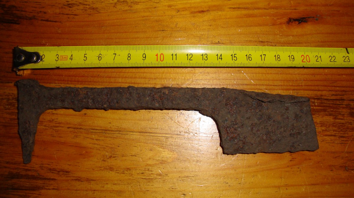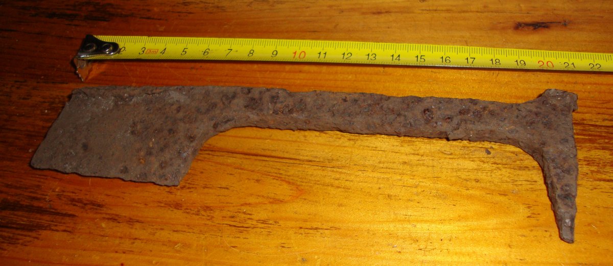 тоже такая мысль была,по идее там где скоба забивалась в держак а по рубящему били может типа долота было...
