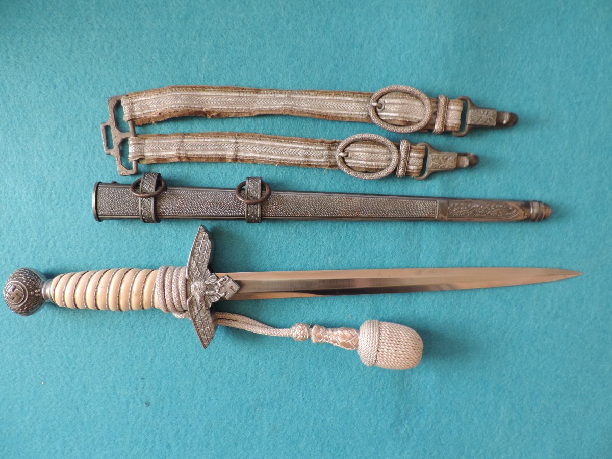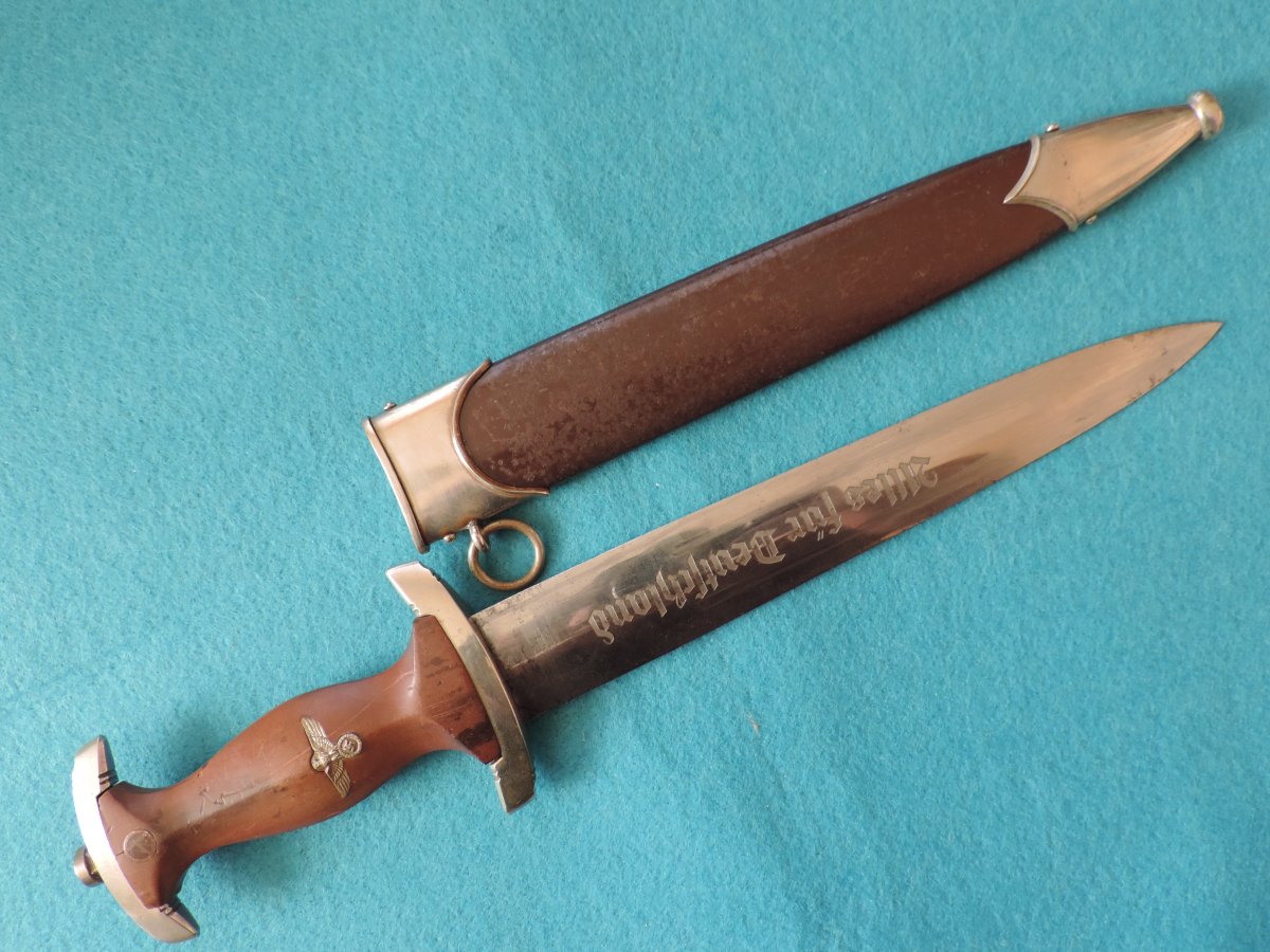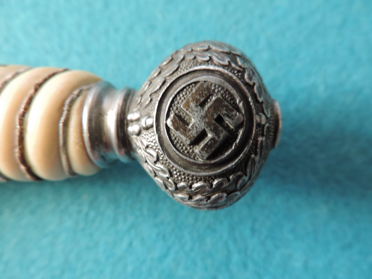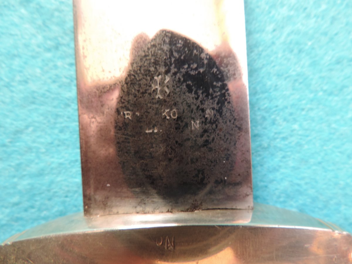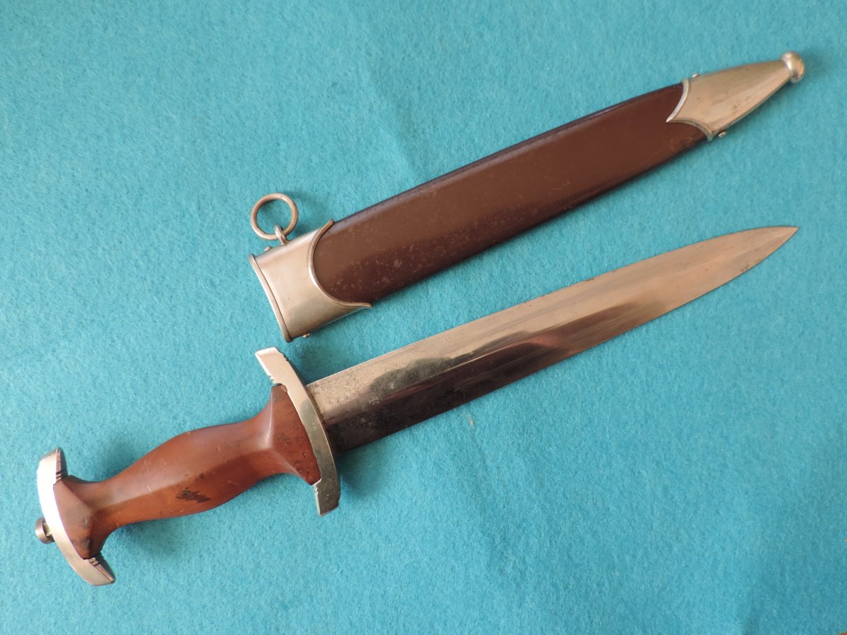 Не может... Это точно она! Цитирую Р. Зигерта. На одних и тех же ножнах встречаются идущие навстречу друг другу дубовые листья... Дальше. На ножнах познего периода про-ва устье запресованно, не имеет винтиков. Ну а так как "поздний", то и устье выточено "кривыми руками" - это норма.