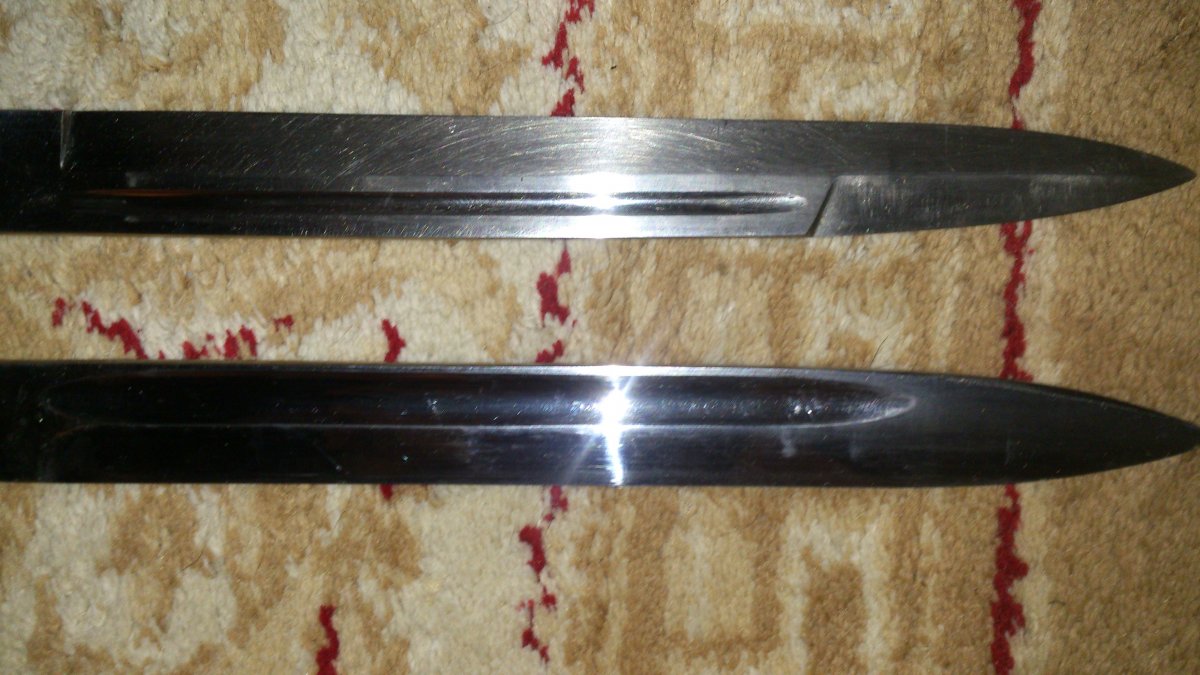 Вот фото пусть не парадника, но суть та же. Из-за выбранного металла выводить острие нужно как раз по центру дола. И вряд-ли получится сделать острие как у окопника. Согласен, что переточка не имела смысла, тем более выше фото со сменными лезвиями все расставило на свои места.
