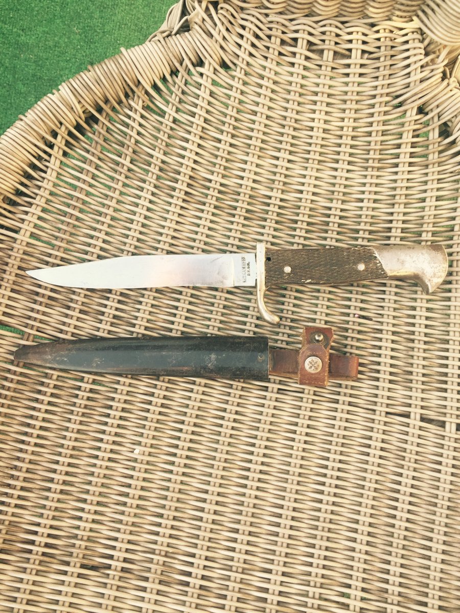 Кнопки просто декор,их каким то способом инсталлировали,ни чего общего с кнопками байонетов не имеющие.Все предметы показанные участниками в теме аутентичны,без вмешательств и выпущены именно в период вов1,в том числе и нож обсуждаемый в теме и я это признаю(имхо).Просто лично я считал ножем только тот предмет,который не имеет крепления к оружию.Нож по вашей ссылки для меня вообще полная загадка,клинок от парадника,декоративная кнопка от ножа и паз для крепления к оружию,размер бы его еще знать.Как то в нем вообще все не клеется,подвес от первой мировой,клеймо и форма клинка от ВОВ2,да пожалуй я не прав все в мире бывает.