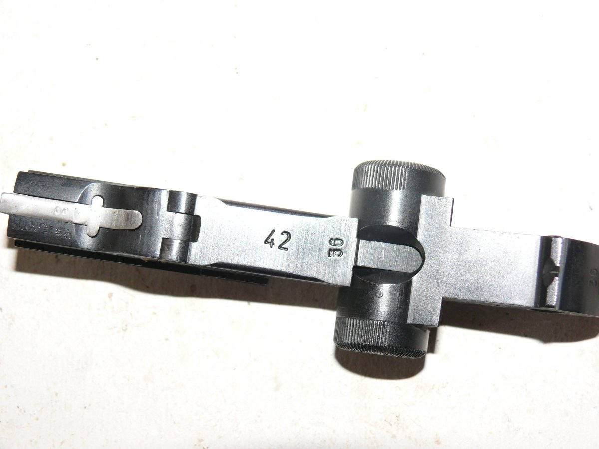 Ресивер серьёзно поврежден деактивом, пропил ствола – это одно, но гораздо критичнее, что с низу уничтожена резьба ствольной коробки, так пилили в Европе, в частности DWM-shop. Ствольная коробка ранняя, но в плане производителя под вопросом, ибо варианты с проточкой под прицел были само-собою у артиллеристов от DWM, а с 1916 г. универсально в исполнении от Erfurt, но в обеих случаях должны быть нанесены клейма армейской приемки и год выпуска сверху над патронником (таких коммерческих вариантов не было), хотя о производстве Erfurt говорит птичка приемки на стволе. Возможно, эти клейма сошлифованы. Затворная группа от Маузер Верке "42" - 1939-1942г.