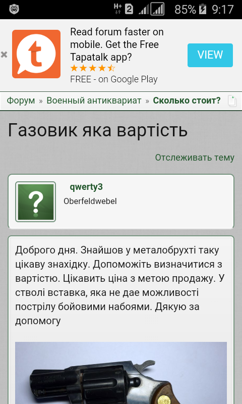 Шановний "D-day", дякую за слушне запитання. Пояснюю. Згідно правил форума в назві теми потрібно вказувати, що саме цінить ТС, про що я і написав. Мене монети не цікавлять, а тому, як що в назві було би вказано, що просять оцінити монети, то я, а також інші, не заглядували би до теми. У мене в назві чітко вказано, що потрібно оцінити. Щодо "військового", то пістолет до нього відноситься більше, ніж монети. А взагалі дивлюсь, Вам не сподобалось те, що наши точки зору щодо реставрації, або ні М24, та оригінальності дерева не співпали. Ось ця тема https://reibert.info/threads/m24-mmg-granaty-ne-iz-zemli.1103770/page-9#post-12219724 . Прикро, що Ви при цьому переходити на особистості. Вдалого Вам дня, шановний. А також добрих знахідок, у тому числі і монет.