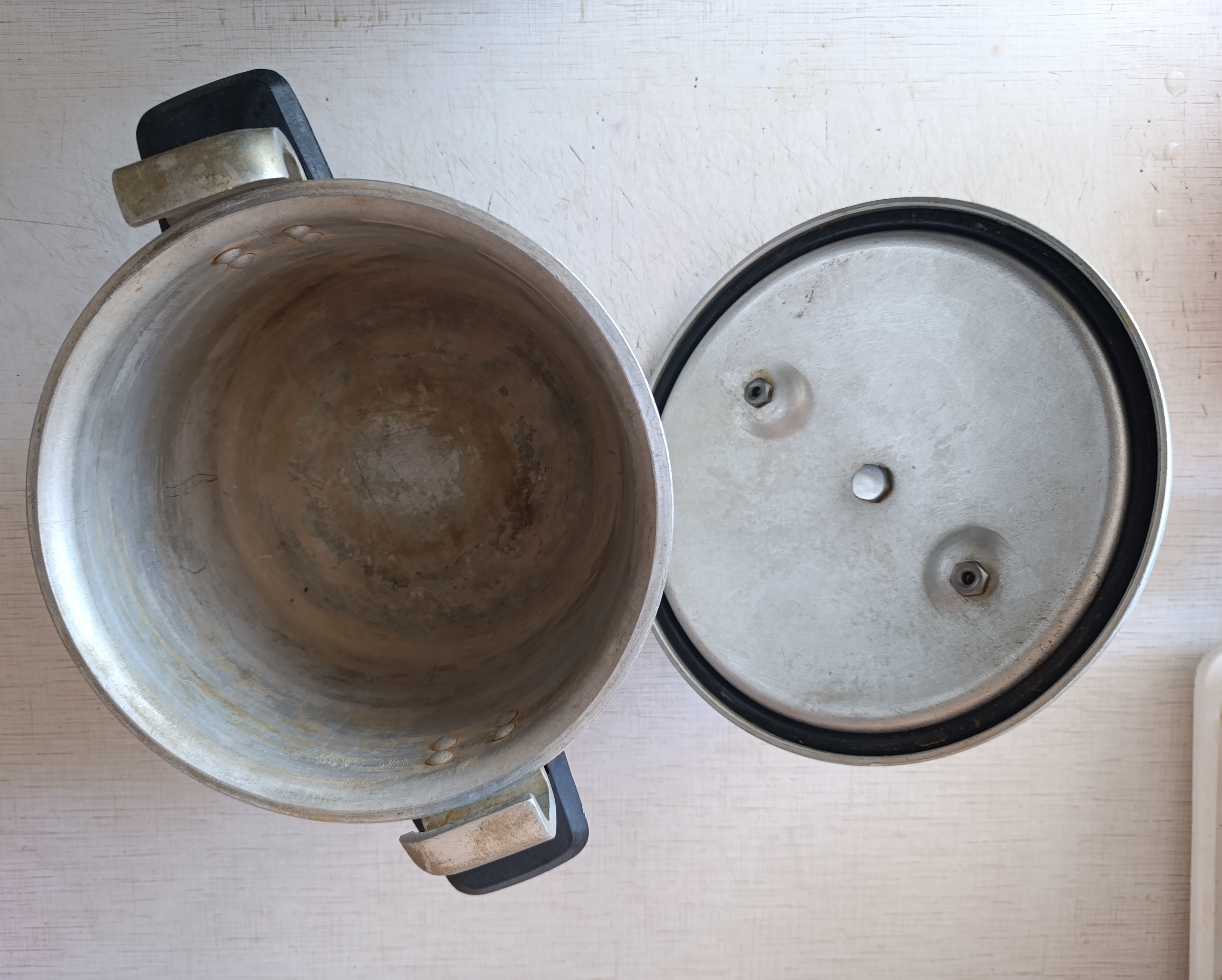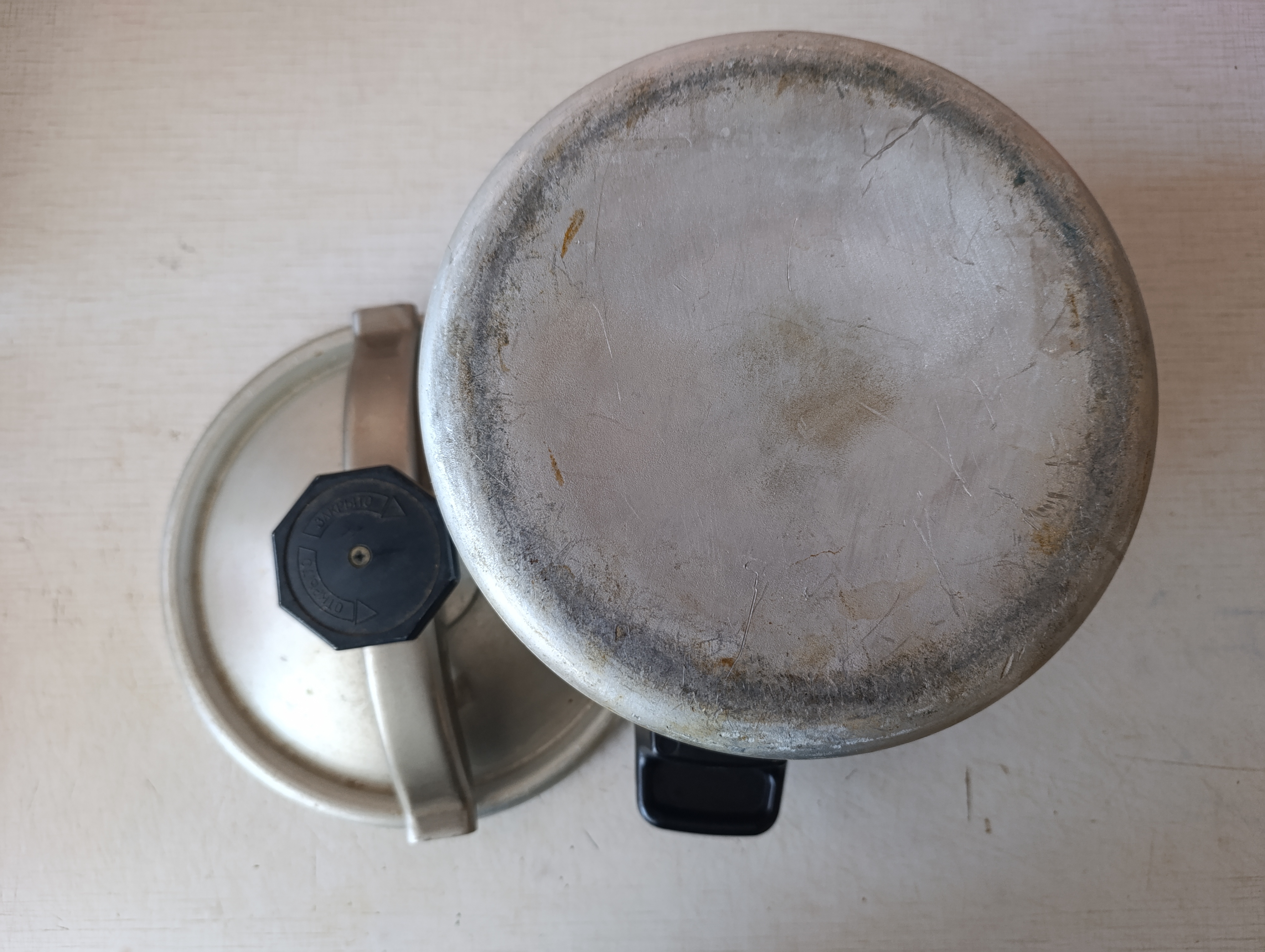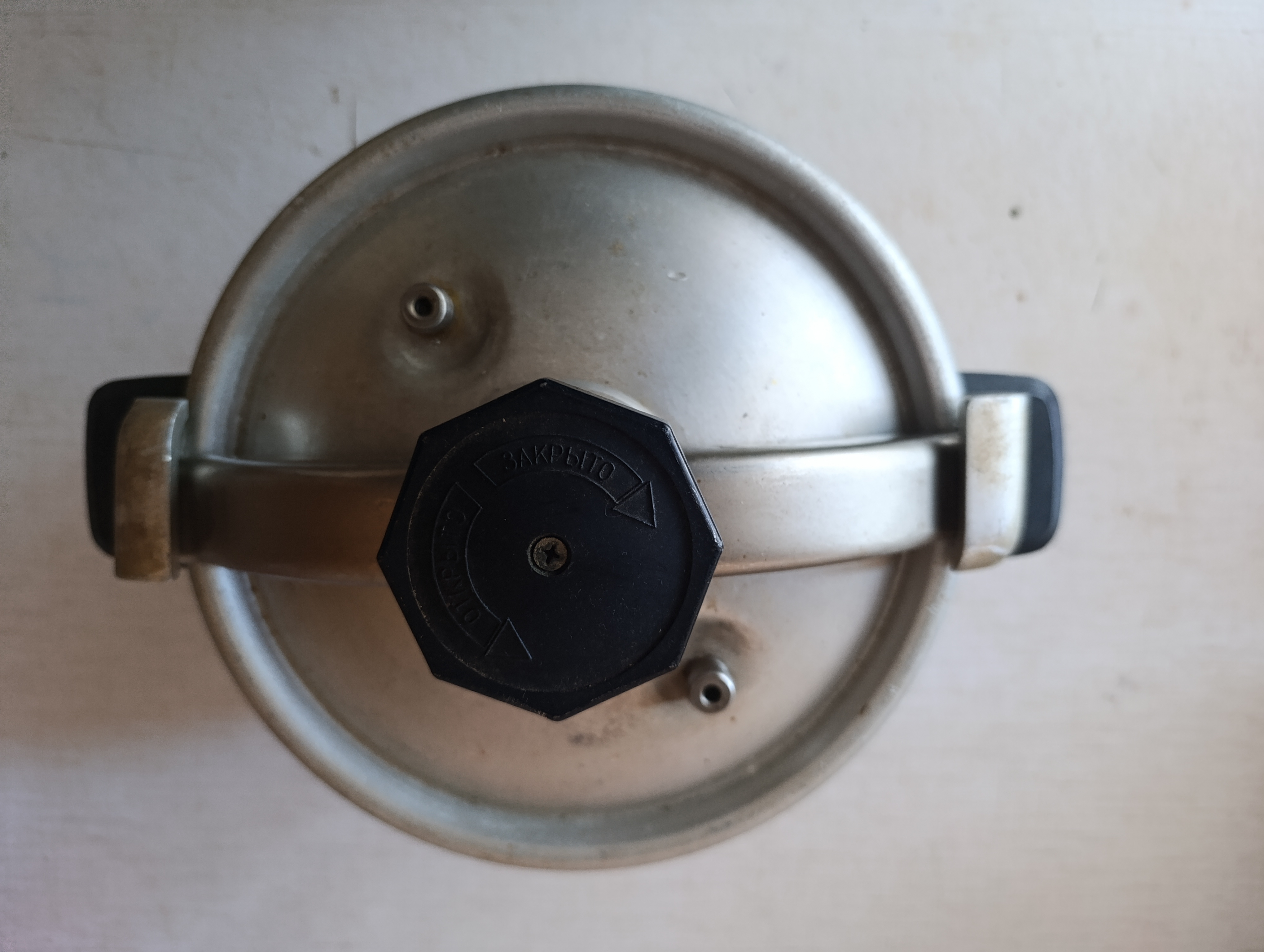 Це алюмінієва скороварка радянського виробництва. Готує їжу під тиском, що значно прискорює процес приготування. Завдяки герметичній кришці та клапану підтримує підвищені тиск і температуру всередині. Може мати об'єм близько 6 літрів. Виготовлена з товстого алюмінію. Ціна 2000гр.