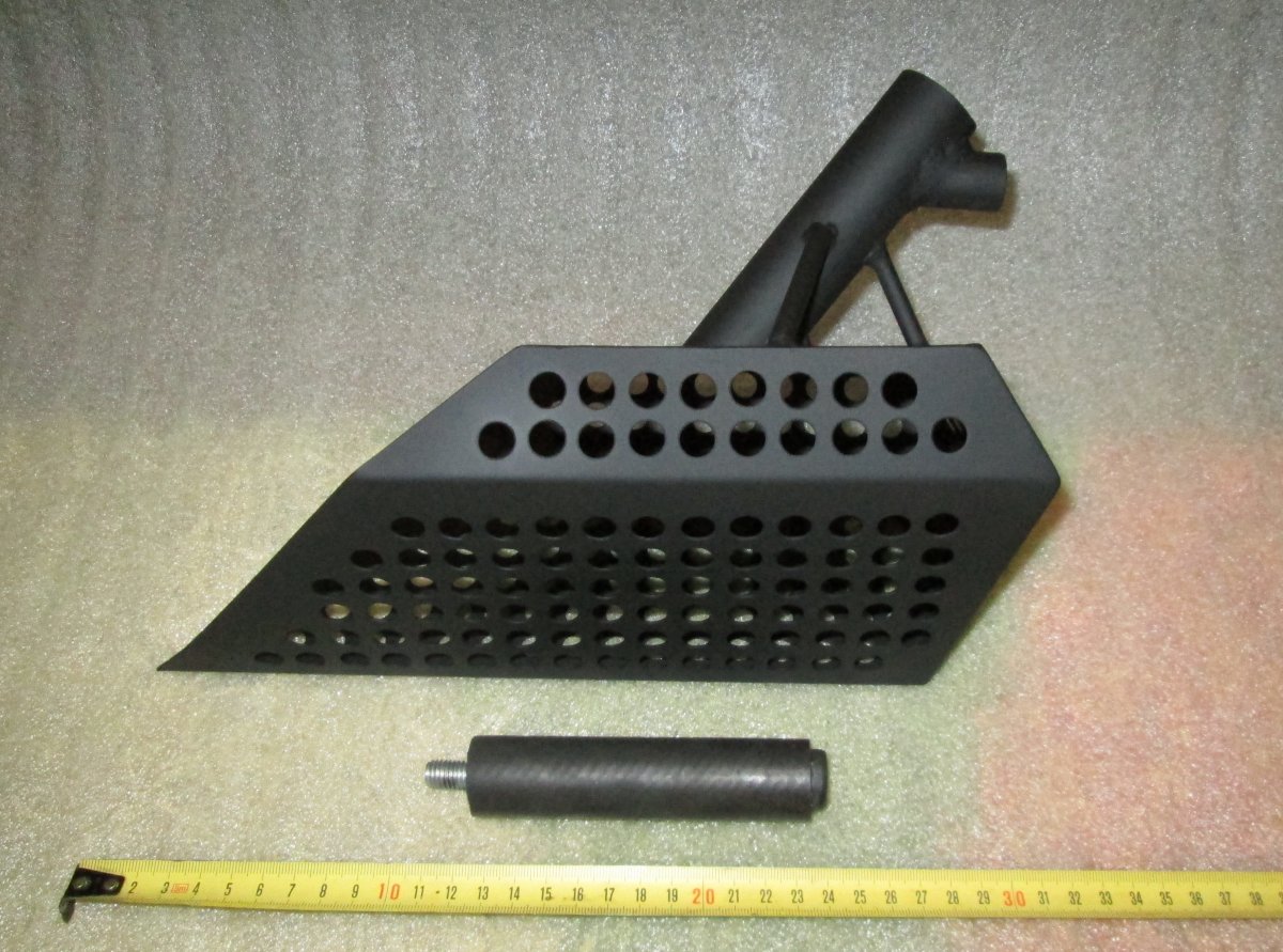 Скуб сделан из стали толщиной 1,2мм,отверстие 10мм,труба под черенок 30мм,окрашен акриловой краской.Можно пользоваться без черенка,ручка съёмная на резьбе.