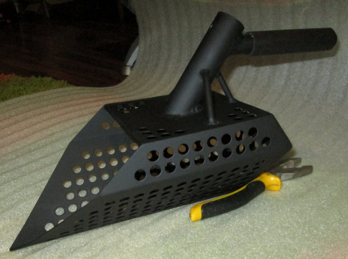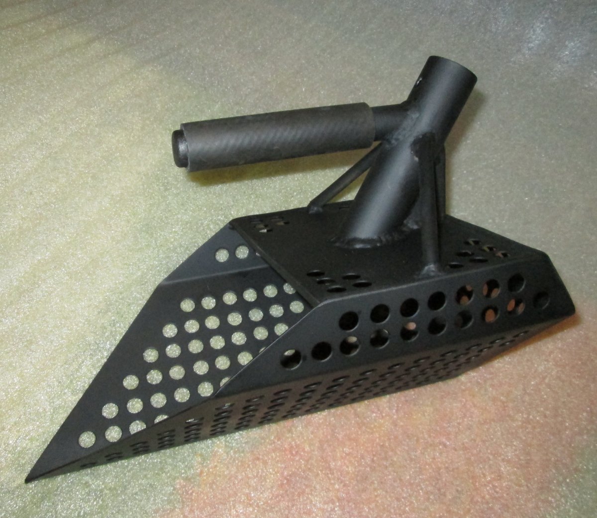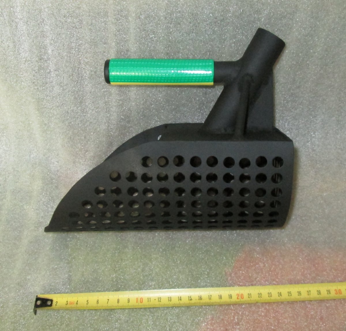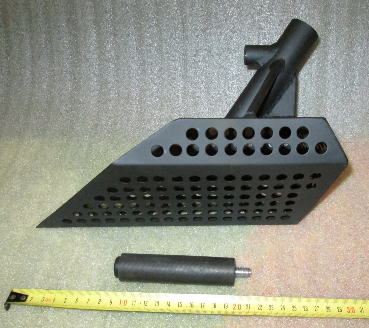 Скуб сделан из стали толщиной 1,2мм,верхняя площадка 2мм,отверстие 10мм,труба под черенок 30мм,окрашен акриловой краской.Можно пользоваться без черенка,ручка съёмная на резьбе.
