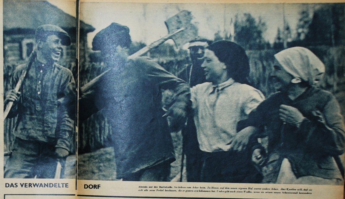 1-2) Материал из журнала Люфтваффе "Адлер", Тетрадь №14 за 8 июля 1941-го года. 3-4) "Армия без государства". Материал про русскую эмиграцию в выпуске немецкого журнала "Das Ehrenkreuz" от 15.07.1936 г. 5) Иллюстративный материал из газеты Штрайхера "Штурмовик" №1 за 20 января 1942-го. причем это последняя 9-я часть большого материала об Украине (например одно из мест - это Киев). Празднование Пасхи в православном храме, глазами немецкого художника. 6-7) Рассказ о советском рае - журнал Фрауен варте