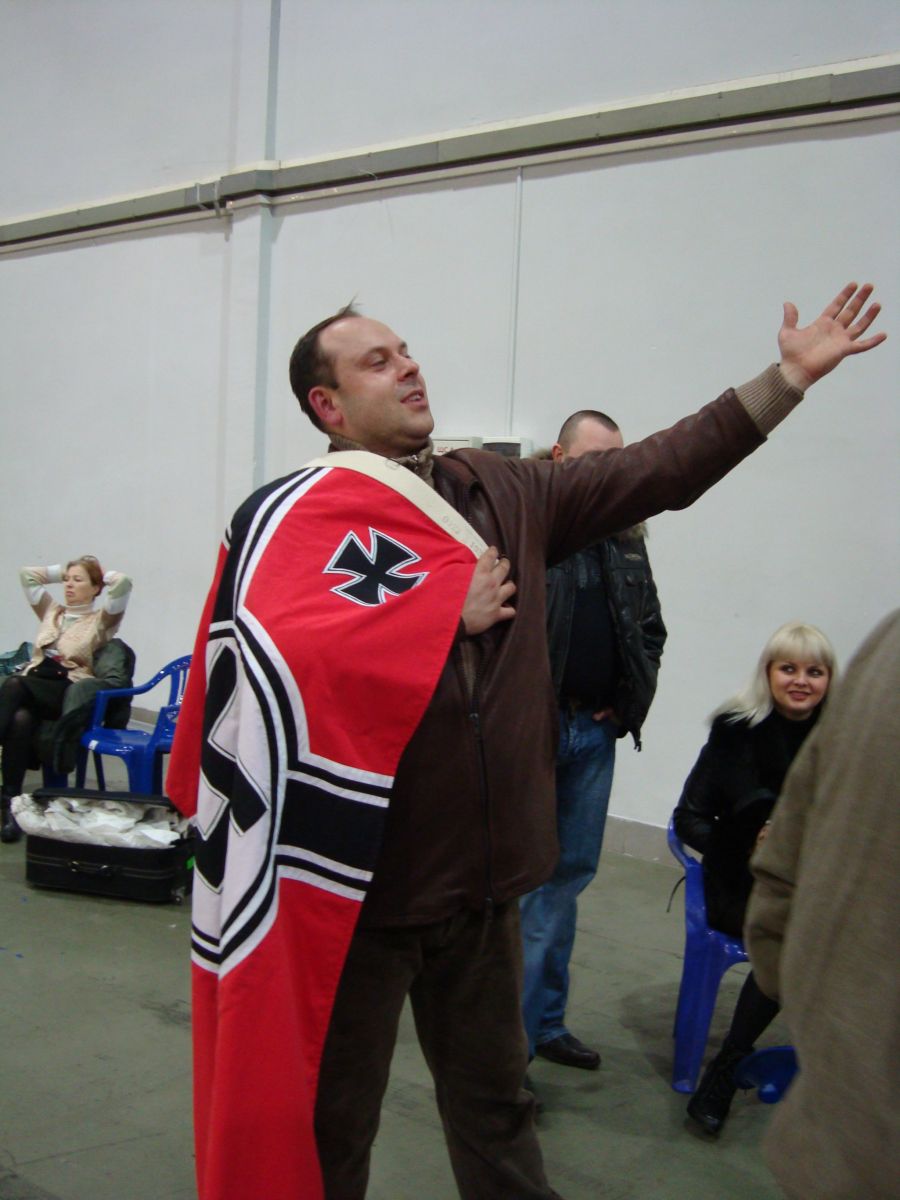 Прилетел легендарный Черный Банщик..естественно в правильном плаще. начал угрожать Артурчику расправой (фотки прилагаю) .. в конце концов они решили таки скупить весь слет..как и обещали!..