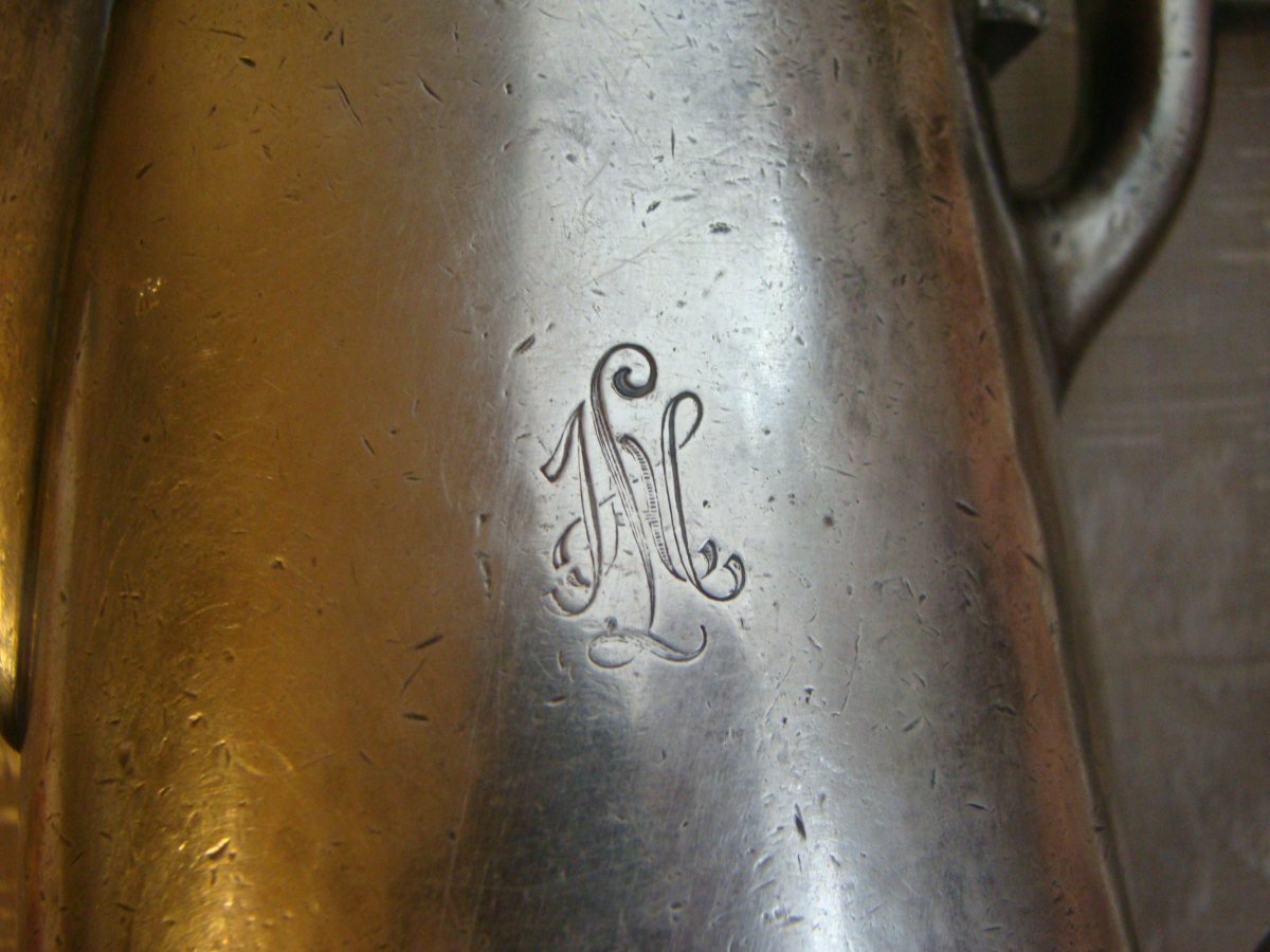 Приветсвую. Первая половина 20-го века. Оригинальный. Вензеля - фамильные от хозяина. Вот из той же серии: http://www.925-1000.com/forum/viewtopic.php?t=24481 https://auction.catawiki.com/kavels...-silber-art-nouveau-coffee-tea-set-circa-1925 http://www.skarstore.xyz/silverplat...ndoff-silver-plate-pitcher-193335-p-23584.htm По клейму много инфы в нэте. Вбивайте и читайте. С ув.