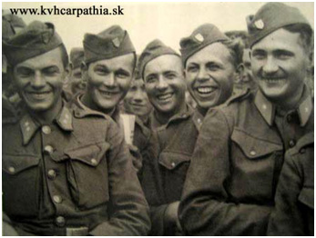 Большая статья о массовом побеге словацких солдат из большевицкого плена в июле 1941 г., во время боев за Липовец (на словацком): http://www.druhasvetova.sk/view.php...-sovietskeho-zajatia-i&cisloclanku=2007050008 Перевод подписей под фотографиями (если что звиняйте, мой словацкий оставляет желать лучшего): 1. Министр Национальной обороны Фердинанд Чатлош (третий слева) беседует с солдатами Мобильной бригады, которым удалось бежать из совецкого плена. Слева-направо: цатник Антон Мартинович, десятник Štefan Jevčák, стрелок Йозеф Бено, стрелок Франтишек Suchar, стрелок Йозеф Parila, стрелок Фабиан Hlubík, десятник Рудольф Daubner, стрелок Стефан Свитек и слободник Карел Červenák. 2. Стрелок Фабиан Hlubík (крайний слева) рассказывает министру обороны Фердинанду Чатлошу, начальнику Управления пропаганды и другим высокопоставленным лицам об обстоятельствах своего побега. На нем надет захваченный красноармейский ремень. 3. Стрелки Йозеф Strakota, Йозеф Бено и Франтишек Suchar смогли бежать, когда в районе города Старый Дашов перевернулся грузовик, в котором их везли на Восток.