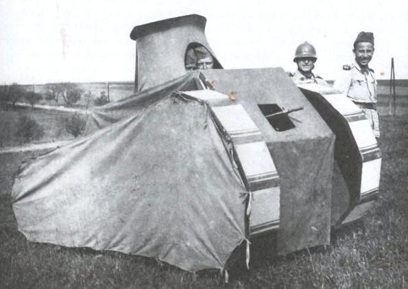 Военная академия чехословацкой армии в Границих на Мораве, 1933-35 гг. Будущие офицеры бронетанковых подразделений тренируются на макетах лёгких танков Renault FT.