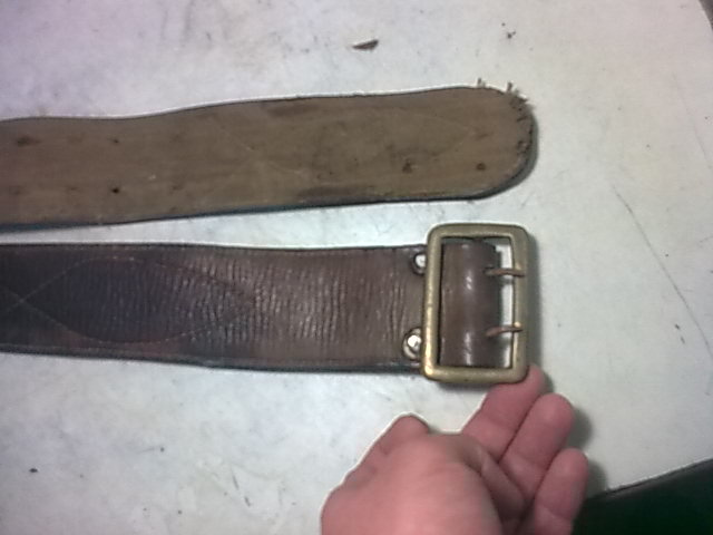 Блин,как попал в эту тему,так все больше вопросов возникает,ибо словаки как-то прошли мимо моего внимания,хотя проходили в 1941 через нашу местность. Вот очередной вопрос - это,часом,не словацкий офицерский ремень? С обратки кожаное полотно ремня фабрично подшито брезентовой тесьмой,напоминающей лямки от советских противогазных сумок. И по той же тесьме насквозь прострочен узор. Подгиб кожи под пряжку переклепывался еще в то время по старыи дыркам. На тыльной стороне подгиба ножом вырезано: Львов К.В.Н. 1947.