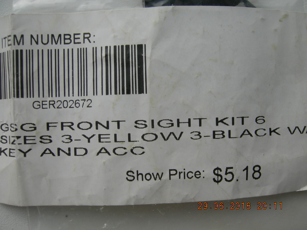 Комплект сменных мушек для GSG5 В комплекте 6 шт ( три черных и три желтых , разной высоты) Новые, запечатанная упаковка Сделаны в Германии Комплектация на фото Цена пусть будет 150 грн Отправить смогу только НП, наложки - нет