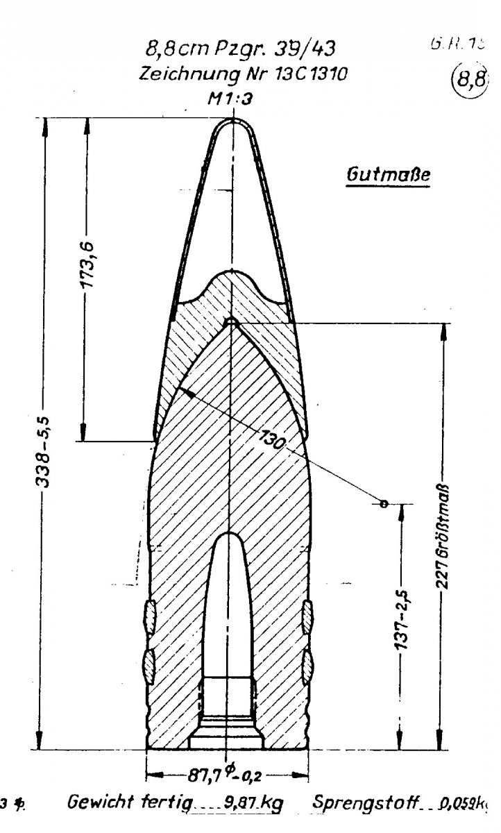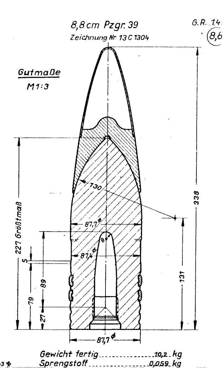 Что то или мне кажется, или реально он маловат для 88 мм. А не 75 мм с Пантерки? Вот такой: https://reibert.info/lots/mmg-75mm-broneboj.269621/