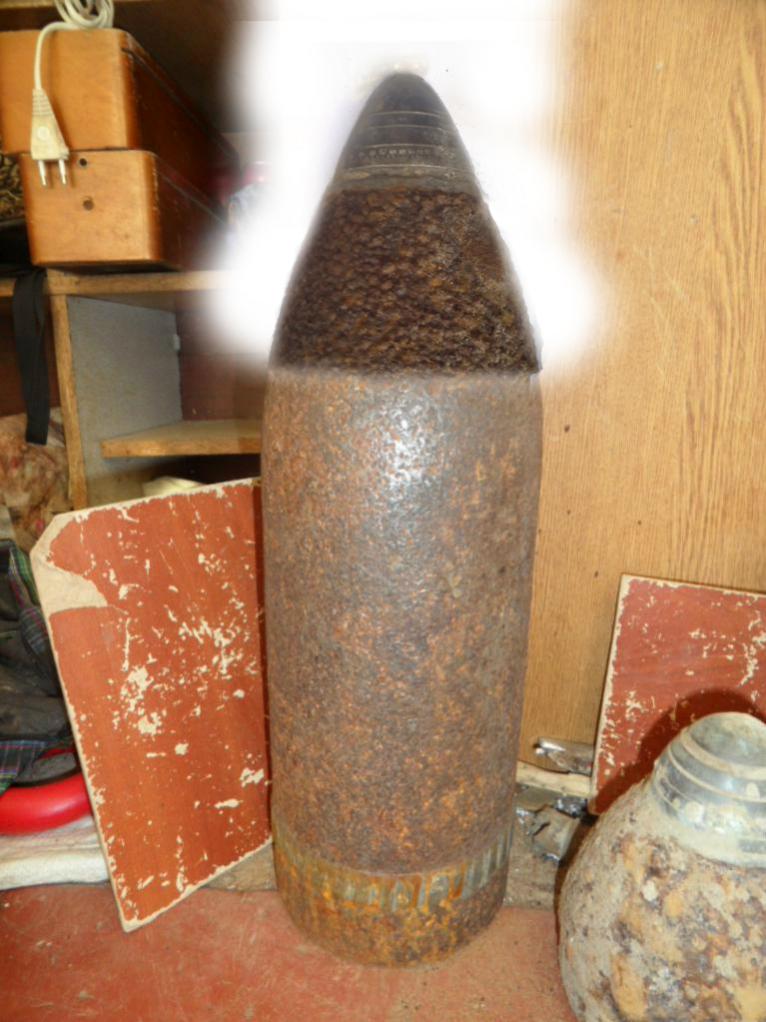 снаряд и есть (точнее был) - это стреляный шрапнельный стакан. а какой - хз. какой у него калибр?