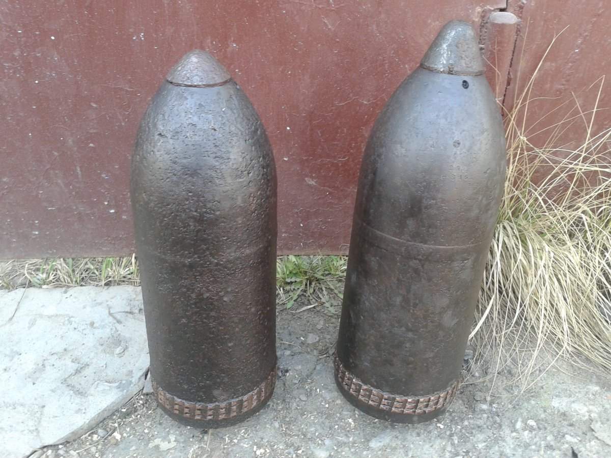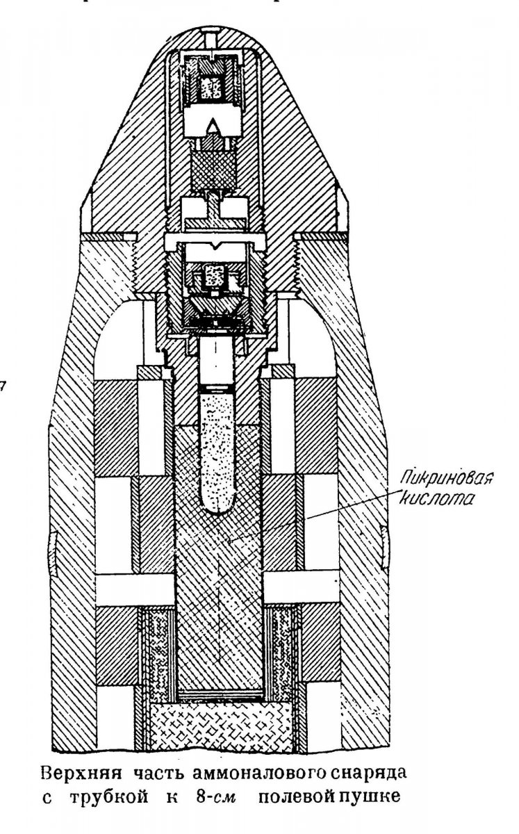 А Вас не смутили 3 (!!!) гильзы Манлихера, приложенные к дну снаряда? А так же ТРИ "нитки" ведущего пояска у снаряда ТС и две "нитки" у 120-мм на фото? Судя по форме гильзы, длина её 56 мм. Исходя из этого, думаю у ТС 150-мм снаряд. Вот он на фото ниже. В голове ударный взрыватель (показан применительно к 8-см снаряду) P/S Кто-то должен узнать свой снаряд.