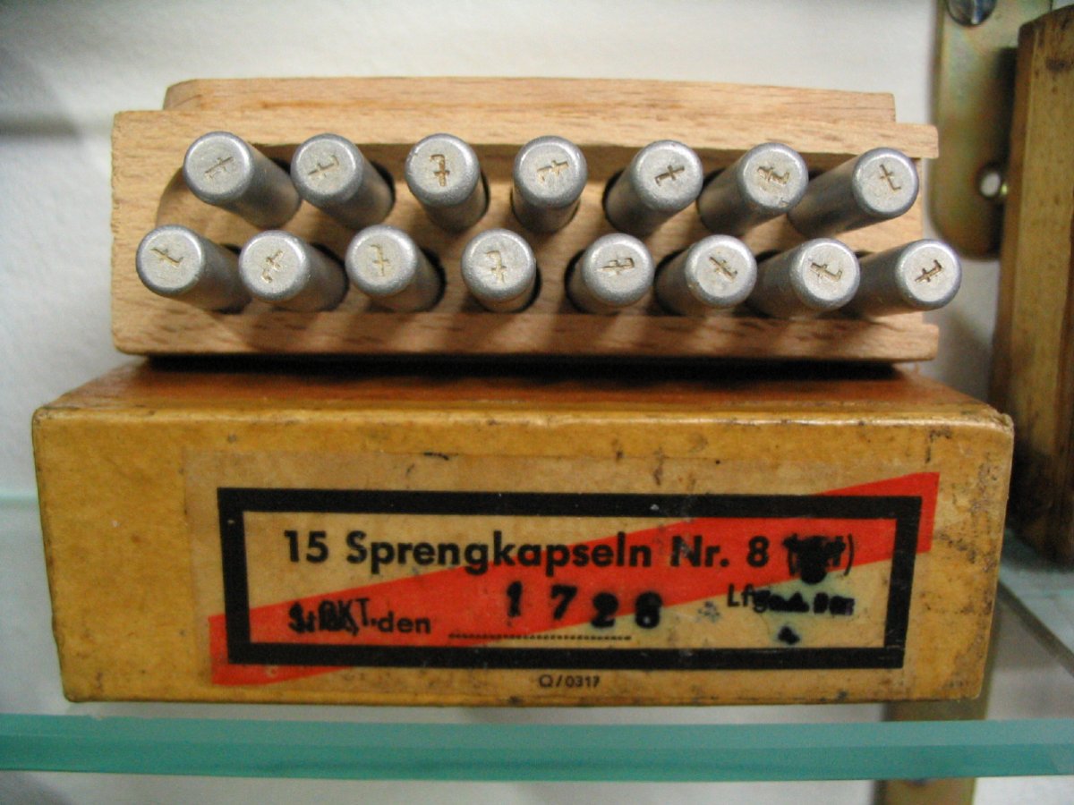 Немцы. ВОСПЛАМЕНИТЕЛИ Zündladung N.4. Не опасны. Применяются в дымовых гранатах и дымовых банках. А вот те которые "без зелёной краски" - ДЕТОНАТОРЫ! Опасны. Они ВЗРЫВАЮТСЯ!