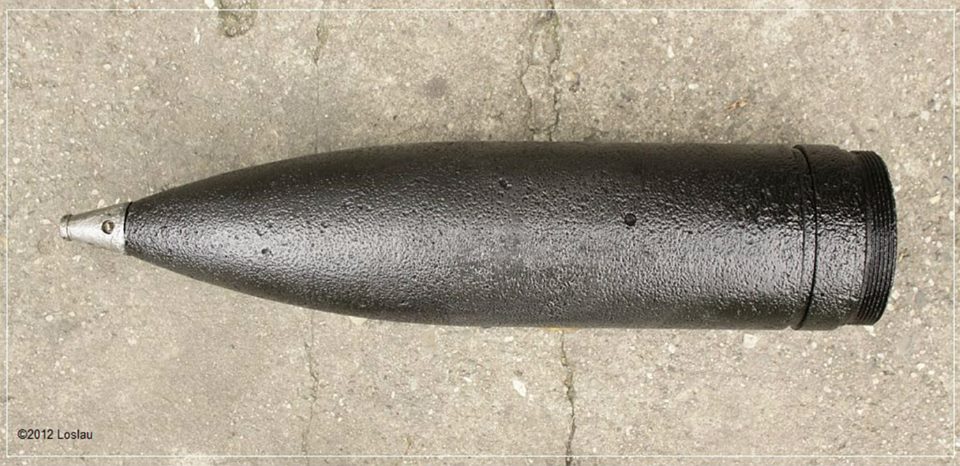 Всем доброго. Подскажите, что за снаряд, пожалуйста. Для масштаба катушка 28 см. На глаз около 100 мм +/- 10 мм.