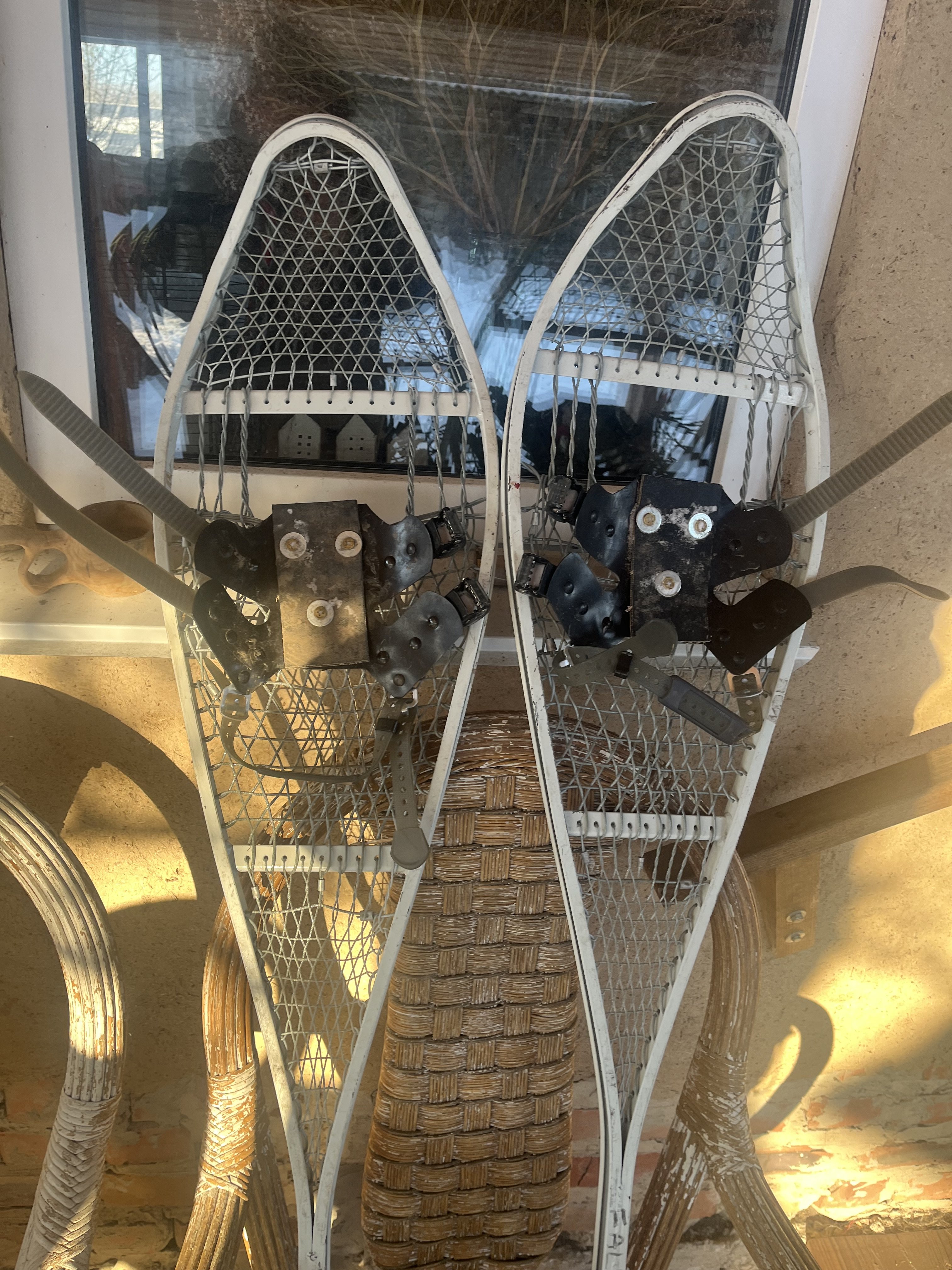 Продам снігоступи , канадійські армійські , невбиваємі Дюраль і нержавіючий трос. Зроблені повністю як індіанські снігоступи . Кріплення рідне зняв ( десь має бути ) але воно дуже не зручне . Поставив дуже гарне кріплення від сучасних снігоступів . Продаю бо вже не той вік , нажаль. Їх вбити не можливо . Я за 12 років користування не бачив ніяких проблем. І зараз немає , як нові . Добавлю , їх коли купував то вибрав з купи ці. Бо були все таки гнуті, порвані троси . Ці були нові .ціна 3500 .Відео можу скинути вже на телефон. Сюди не грузиться .0962305002 Юрій