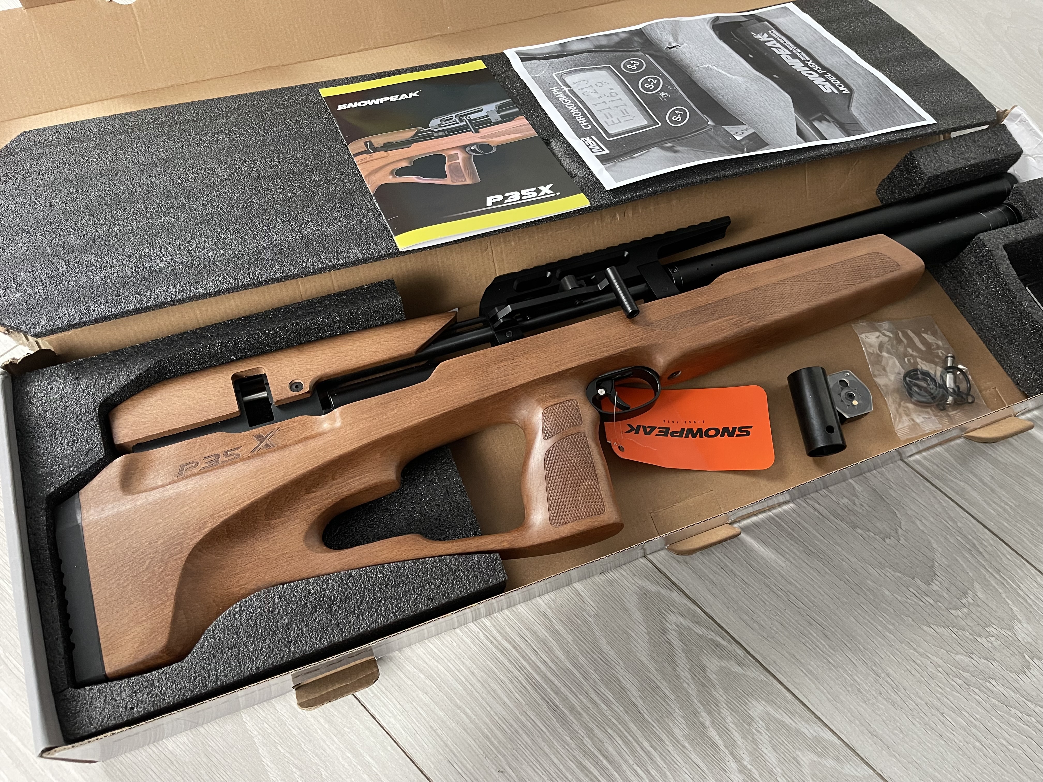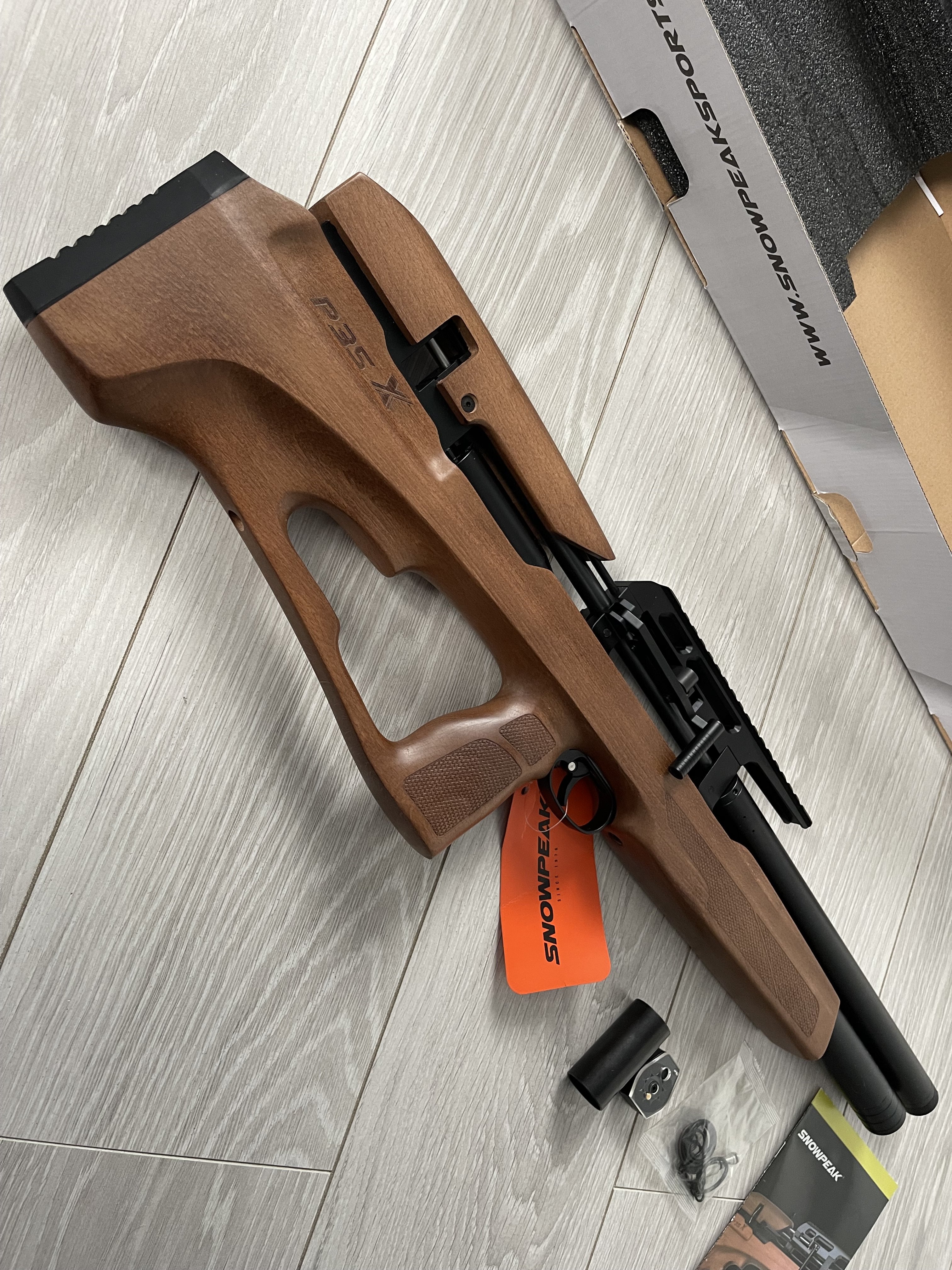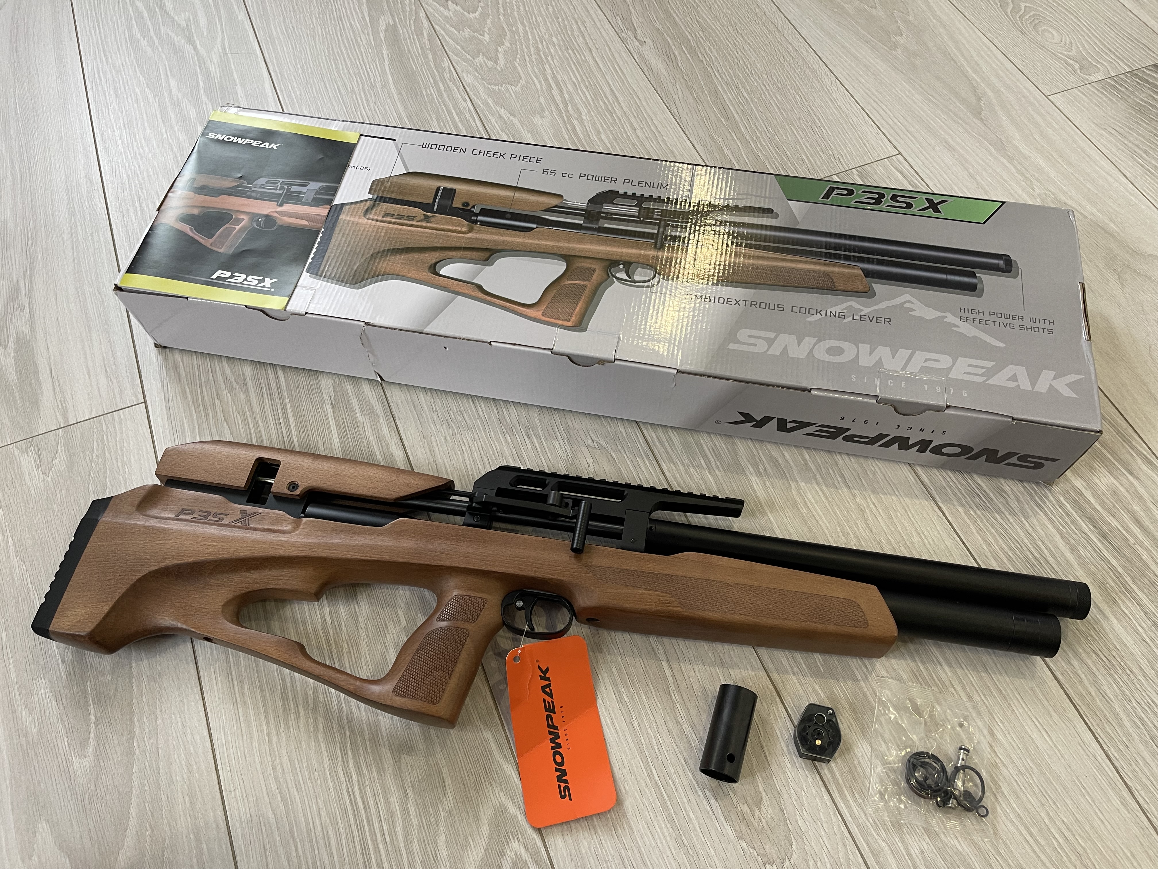 Snowpeak PCP P35X - ДіД Нові ! Гарний дизайн , приємне ложе з Бука. Чудовий баланс. Передній звід з можливістю зміни положення. Вага 2.4кг. Обʼєм резервуару - 280куб. За редукторний обєм - 70куб. Довжина ствола - 53см. Загальна довжина - 76см. 1.645-270 на заводських налаштуваннях. Ціна - 1050$