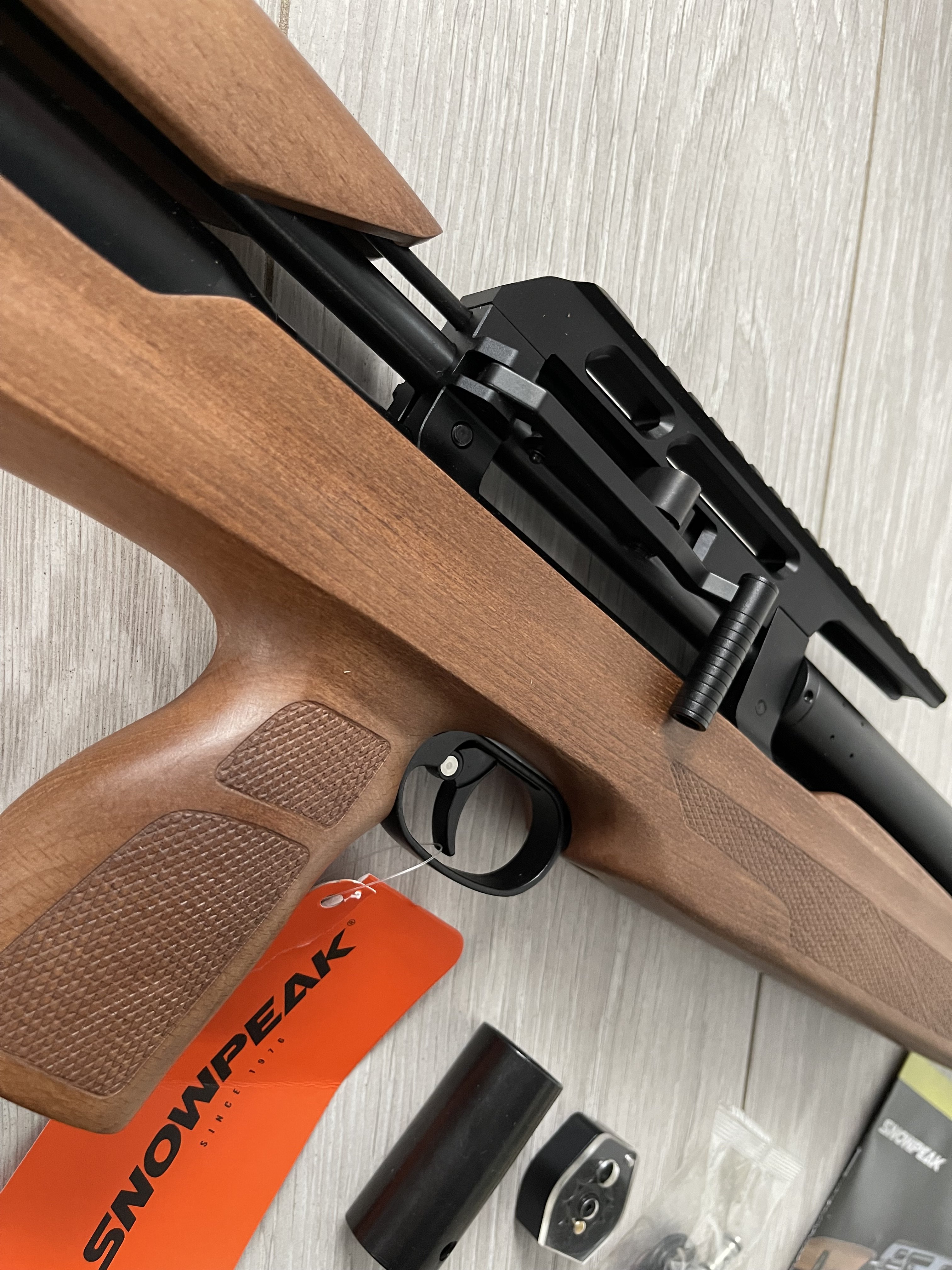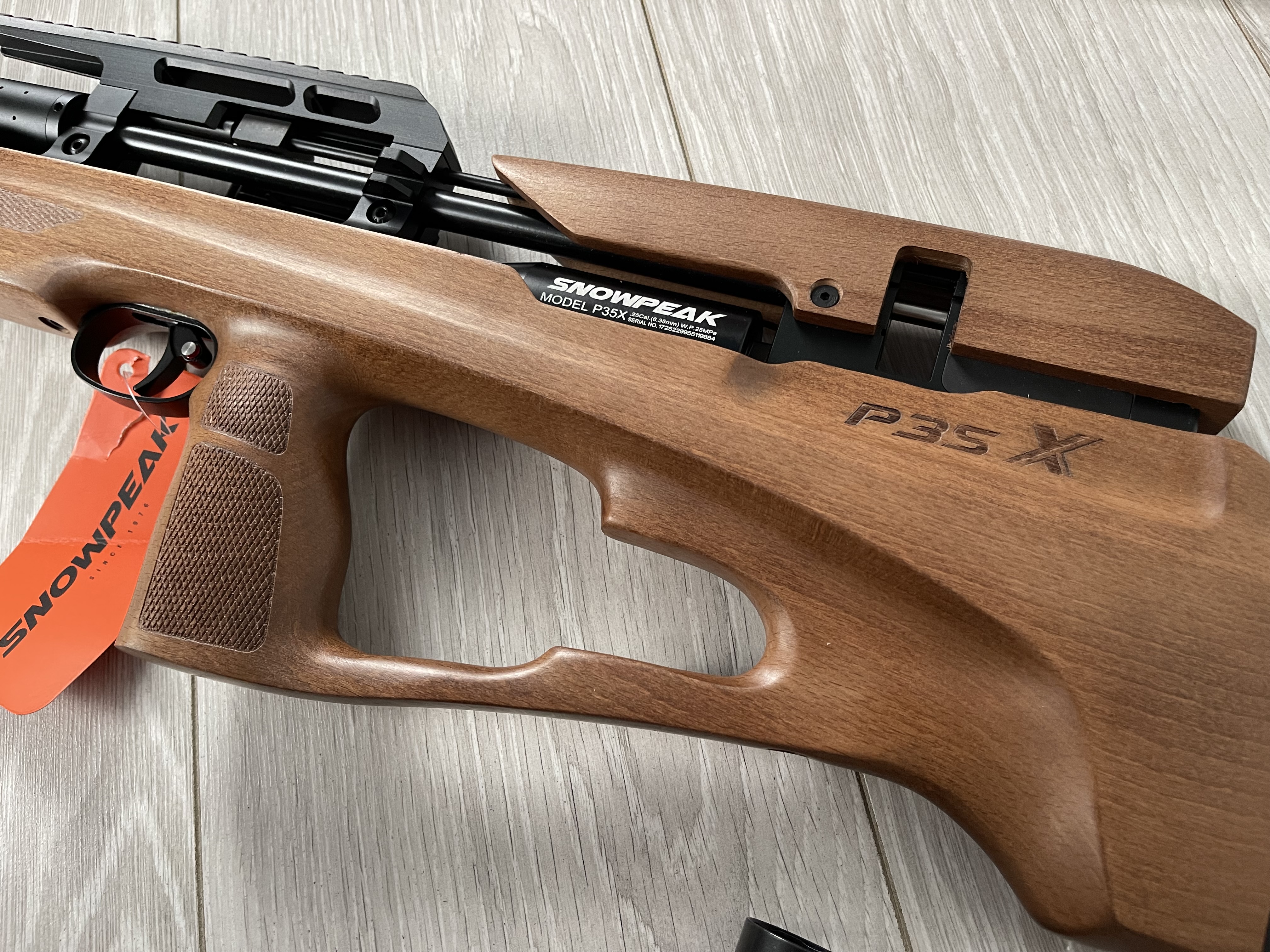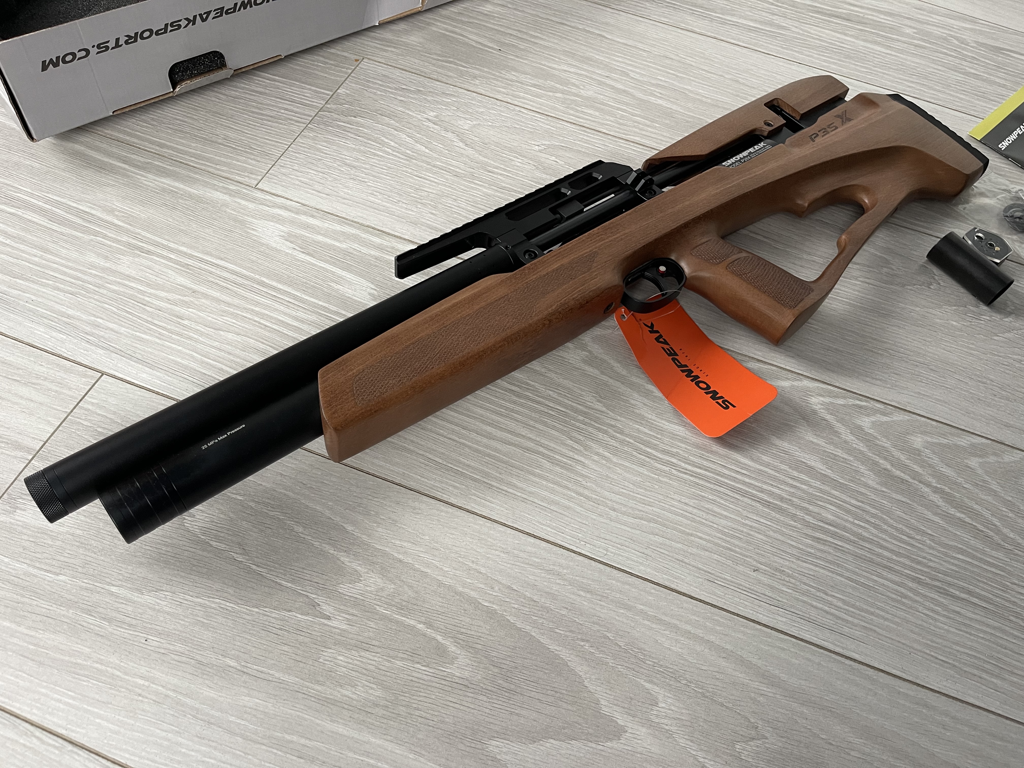 Snowpeak PCP P35X - ДіД Нові ! Гарний дизайн , приємне ложе з Бука. Чудовий баланс. Передній звід з можливістю зміни положення. Вага 2.4кг. Обʼєм резервуару - 280куб. За редукторний обєм - 70куб. Довжина ствола - 53см. Загальна довжина - 76см. 1.645-270 на заводських налаштуваннях. Ціна - 1050$