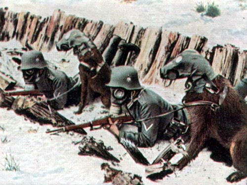 Немцы во время войны использовали огромное количество собак, попадалась в интернете информация, что для различных служб и ведомств было получено почти миллион четвероногих помощников из них не менее 400000 собак для армии. В красной армии использовалось более 60000 собак. Примерно 20000 собак приобрела во время второй мировой войны армия США.