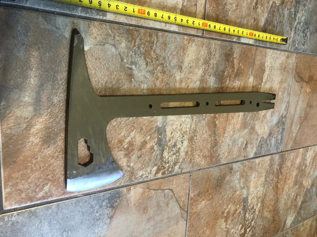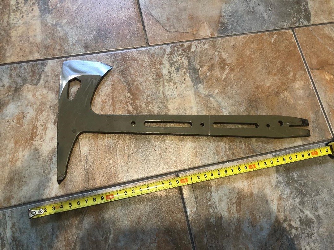 Продам Тактичну сокиру - томагавк. Гарно збалансована, пригодиться у хазяйстві, поході, пікніку, у машині. Крім сокири, виконує функції гайкового ключа, лома, гвоздодера, кірки, кайла. Матеріал - Сталь 65Г. Загальна довжина - 37,5 см. Товщина - 8 мм. Вага - 800 г. Ціна - 800 грн.