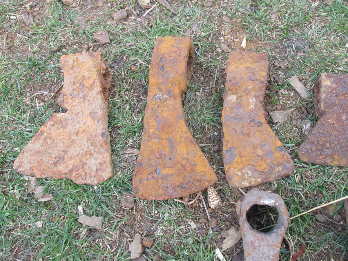 Топоры СССР. Возможно, если клейма проявятся - ЗиК, например(по "строю" очень похожи), - будут желающие их купить. Если клейм нет - мало кого заинтересуют. П.С. Иногда даже лёгкие очертания остатков клейм могут помочь в определении. Не всегда, конечно, но...))) П.П.С. Кстати, про молотки не забудьте. Бывают и такие интересные