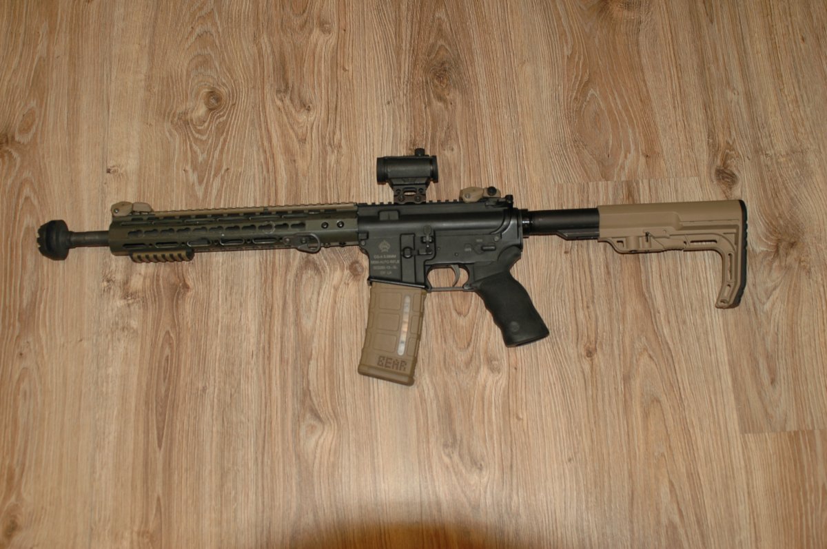 В связи с переходом на другой калибр продам Norinco CQ-A Настрел 500-600 выстрелов. Калибр .223 Состояние отличное. Работает надёжно, проблем никогда не было. Двухсторонний переключатель огня и двухсторонняя кнопка сброса магазина. 1 Установлены облегчённые пружины на спуск 2 Регулируемый газблок Radical Firearms 3 Труба приклада Mil-speс 4 Приклад Minimalist 5 Пистолетная рукоять Ergo Deluxe 6 Цевье алюминиевое 12 дюймов 7 Складные прицельные FAB 8 Рис планка Magpul пластик 9 ДТК Cookie cutter из титана 10 Глушитель разборной вес 320 грамм 11 Прицел китайский типа Micro на ноге 3 см. Точка 2 MOA, держит отлично. 12 Антабка для ремня, использую как хендстопер. 13 Магазин Магпул на 40 патронов 14 Магазин Магпул на 30 патронов с окном индикации заряда 15 Магазин HEX на 30 патронов 16 Ремень реплика Магпула 17 Патроны в сумме 35 шт 18 Планки для патронов, переходник для зарядки и спидлоудер для патронов. 19 Резиновая прокладка в ловер, убрало люфт между ловером и аппером. Продано