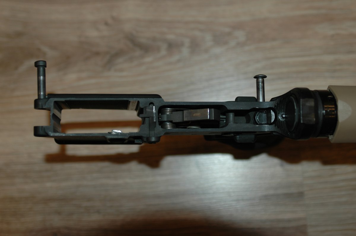 Двухсторонний переключатель огня и двухсторонняя кнопка сброса магазина.