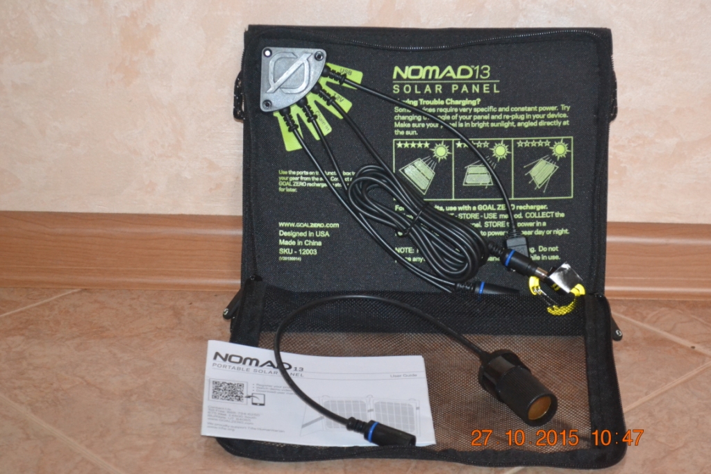 Goal Zero Nomad 13 - солнечная панель, одна из самых удобных и универсальных в линейке Goal Zero. Теперь единственным условием того, что ваши устройства получат необходимую порцию заряда, становится наличие солнца на небе! Куда бы вы не пошли — прогулка, поход или длительное путешествие по диким местам, у вас будет возможность воспользоваться электронными устройствами, не переживая об уровне их заряда. Характеристики: Производитель: Goal Zero (США) Артикул производителя: 12003 Мобильный телефон, MP3-плеер: Время зарядки 1-3 ч Смартфон, GPS-навигатор, USB-камера: Время зарядки 2-4 ч Мощность: 13W Тип ячеек: Монокристаллические Вес (без упаковки): 720 г Габаритные размеры (в сложенном состоянии): 26.7 x 23 x 2.5 см Сертификаты: FCC и CE Оптимальная температура эксплуатации: -17…+48oC Комплект поставки: солнечная панель. автомобильный адаптер для прикуривателя 12V — 1 шт. цена 2950грн